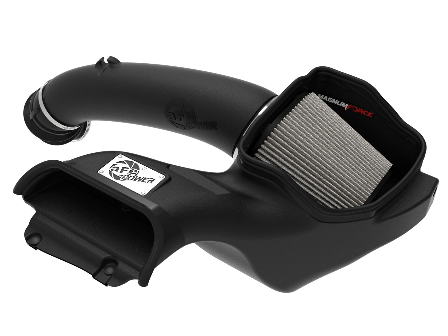 This 9” tall 360-degree radial flow air filter features a 5-1/2" flange and our oil-free Pro DRY S media with three layers of synthetic media for maximum convenience. Its progressive layering provides great filtration efficiency and dust holding capacity, while not requiring the use of oils. This media is best suited for street use. Its inverted top makes for more filter surface area, resulting in longer service intervals. The included massive air filter is surrounded by an open-element XLPE (cross-linked polyethylene) polymer housing that minimizes warm engine air for maximum performance. Its open design allows for easy viewing of the air filter and delivers an aggressive Air Intake sound. It utilizes the vehicle's OE air inlet with no additional hardware. The built-in air intake scoop captures cold air directly from the top of the radiator support thanks to its huge opening. This system features a high quality, computer-designed, dyno-tuned intake tube to achieve maximum power gains while maintaining a perfect fit. Its XLPE material is heat soak resistant and extremely durable. The computer designed system utilizes factory mounting locations, minimizing the use of unnecessary hardware, and ensuring a perfect fit every time. Its innovative design makes for a hassle-free, direct bolt-on installation process that requires no cutting or drilling. Stainless-steel clamps are included for strength, and a premium silicone coupling allows for ample flexibility. Magnum Force intakes are designed with fewer parts for a fast and easy installation.