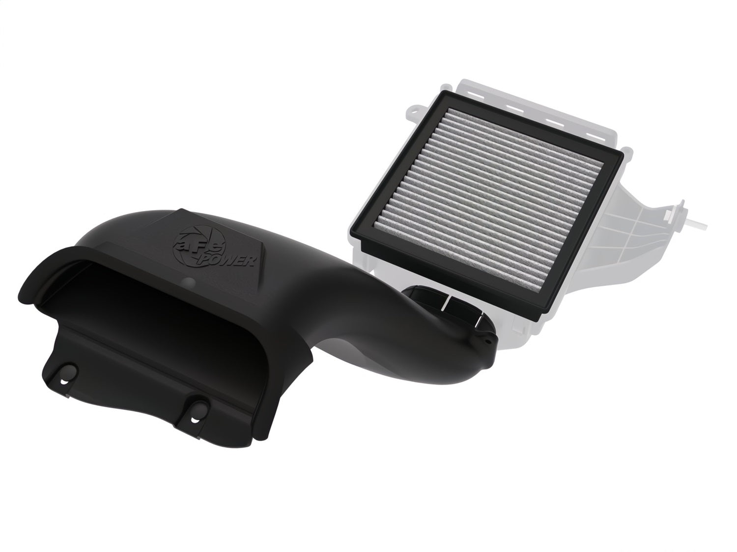 aFe POWER D.A.S. PLUS induction utilizes a large inlet to guide cool ambient air from the front grill directly into your intake system. When combined with the aFe POWER high-performance drop-in filter, the D.A.S. Plus system surpasses the factory set up by an impressive 17% (results may vary). This substantial improvement translates to increased performance and heightened throttle response, allowing you to fully unleash the potential of your vehicle. Constructed from high-quality linear low-density polyethylene (LLDPE) this system is impact resistant, extremely durable, and 100% recyclable. The Pro DRY S filter features three layers of oil-free synthetic media and requires no oil during maintenance to provide maximum convenience. Its progressive layering provides great filtration efficiency and dust holding capacity and is trageted toward street applications. aFe POWER performance air filters use a rounded, evenly spaced pleat design which allows for more usable filter surface area, providing increased flow and greater dust holding capacity. Pro DRY S media is easily cleaned with aFe POWER CLEANER and water.