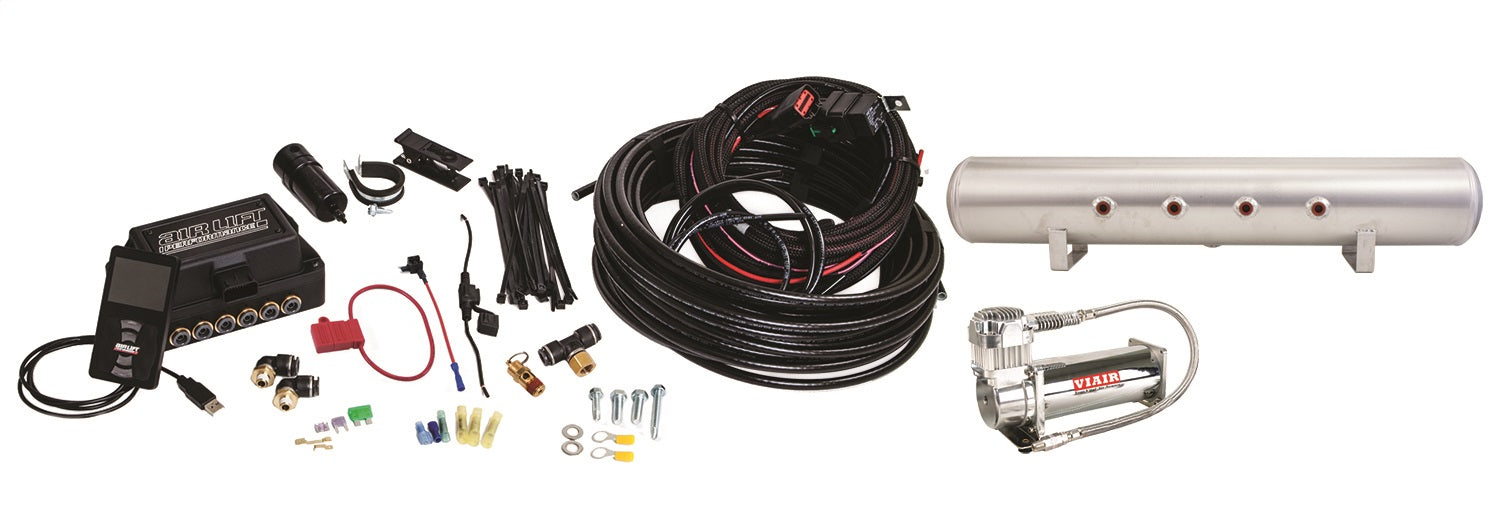 Air Lift Performance 3P .375in Air Line, 5 Gallon Lightweight Raw Aluminum Tank, VIAIR 444C Compressor