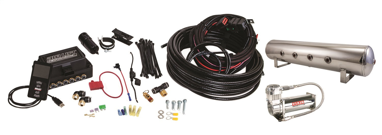 Air Lift 27789 - Performance 3P (3/8 Air Line 4 Gal 7-Port Polished Aluminum Tank VIAIR 444C Comp)