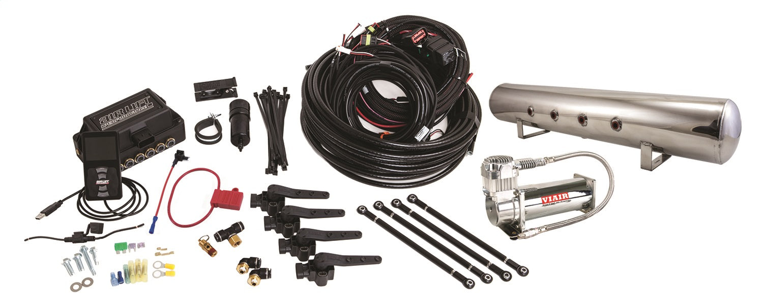 Air Lift Performance 3H .375in Air Line, 5 Gallon Lightweight Polished Aluminum Tank, VIAIR 444C Compressor