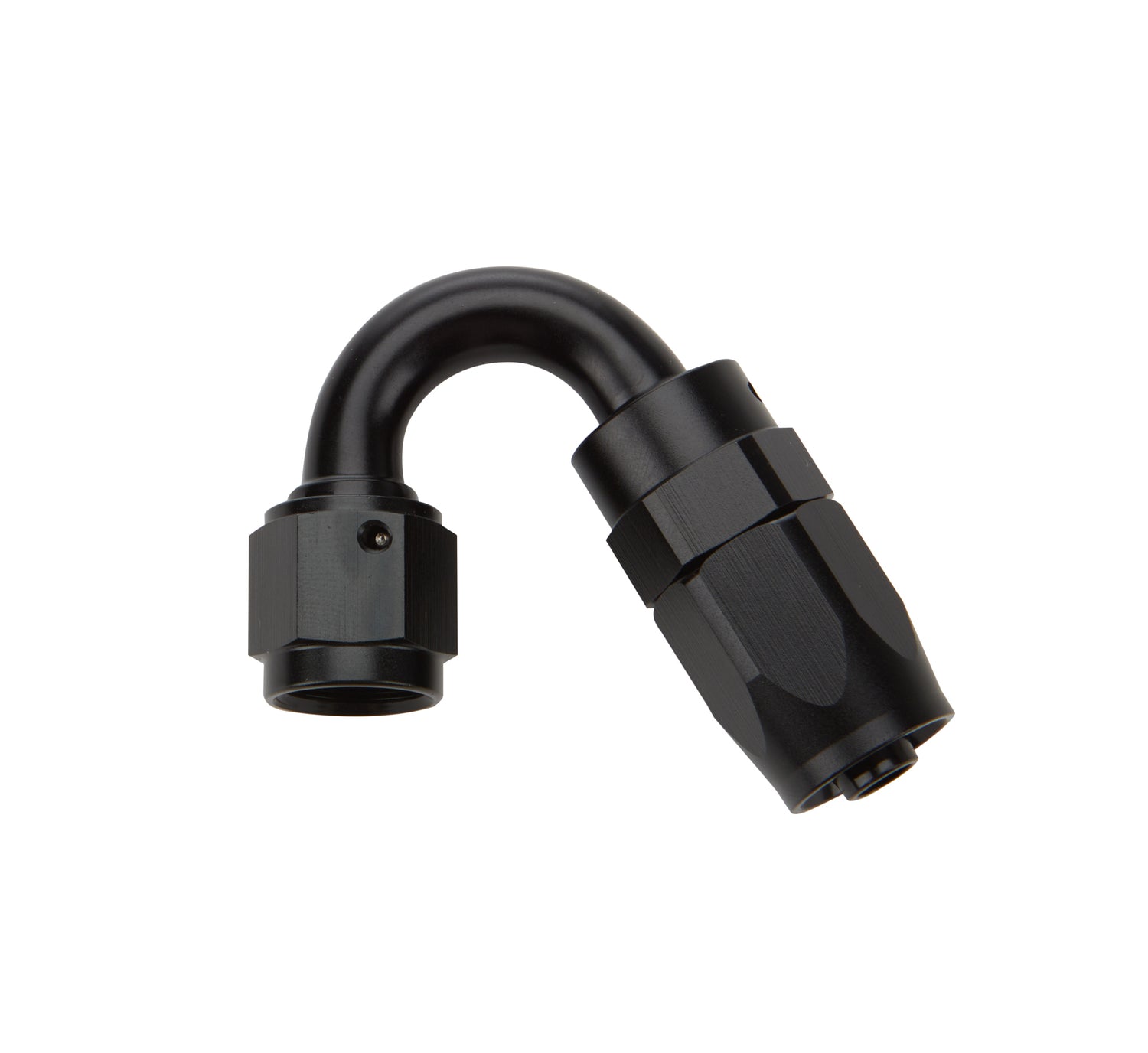 Fitting - Hose End - 150 Degree - 6 AN Hose to 6 AN Female Swivel - Aluminum - Black Anodized - Each