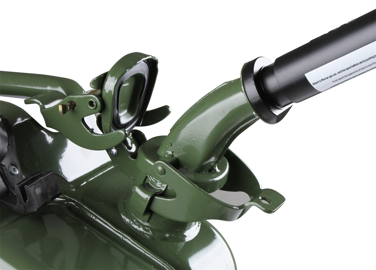 - Premium Easy-to-Use Spill-Free Spout incorporates the Unleaded fuel spout for smaller necks