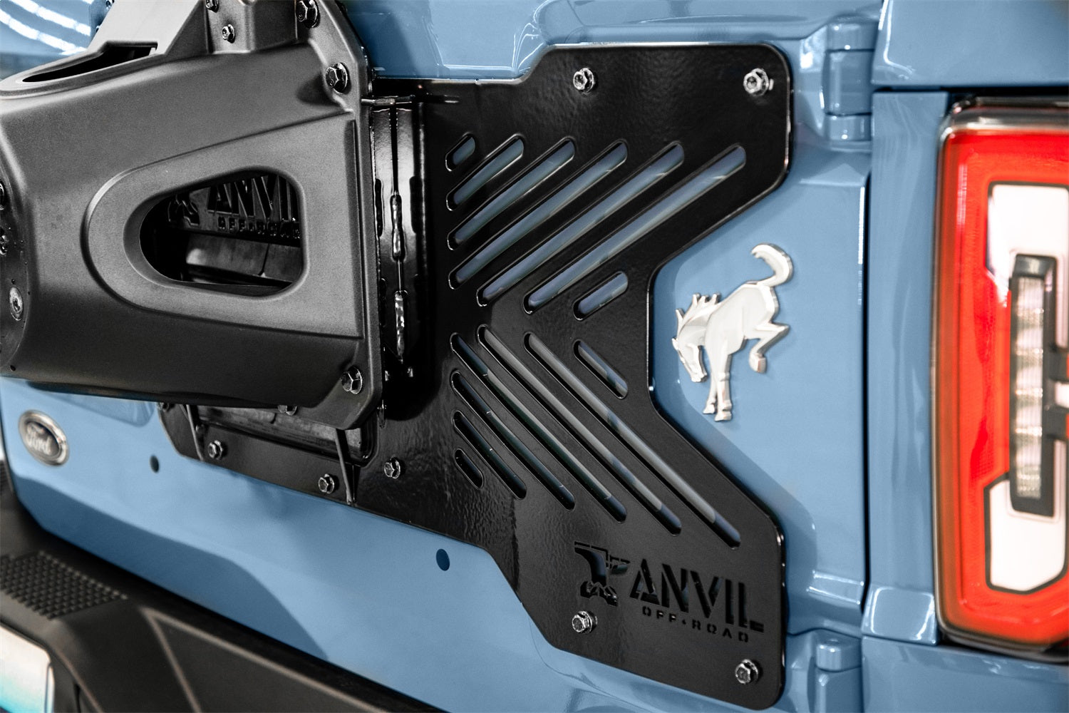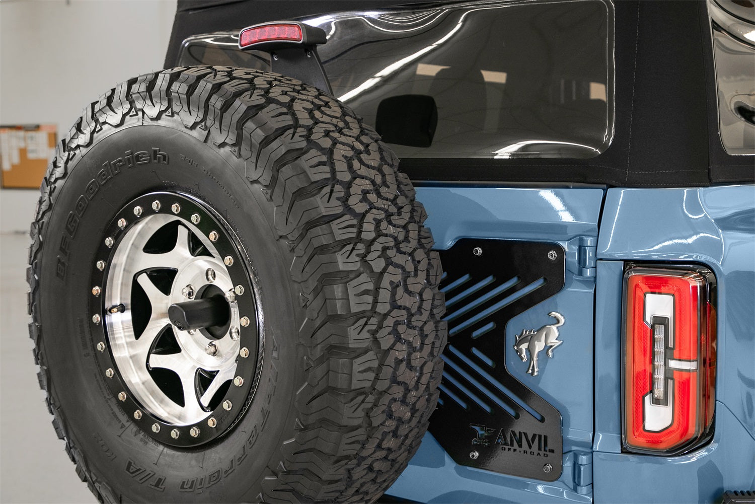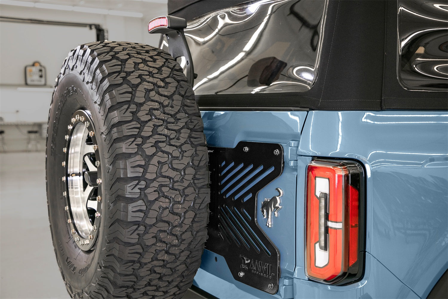 Update your Bronco today with these two kits so you can now run your larger spare tire as well (up to 37-inch tire). You've got your new larger tires and now these two kits will help relocate and reinforce your spare tire carrier and move your third brake light up so you are ready for all off-road missions and road trips. The 628-31AOR relocates your spare tire a little outward and higher while reinforcing your tailgate (two-piece kit). The 628-41AOR relocates your third brake light to clear your larger spare tire.
