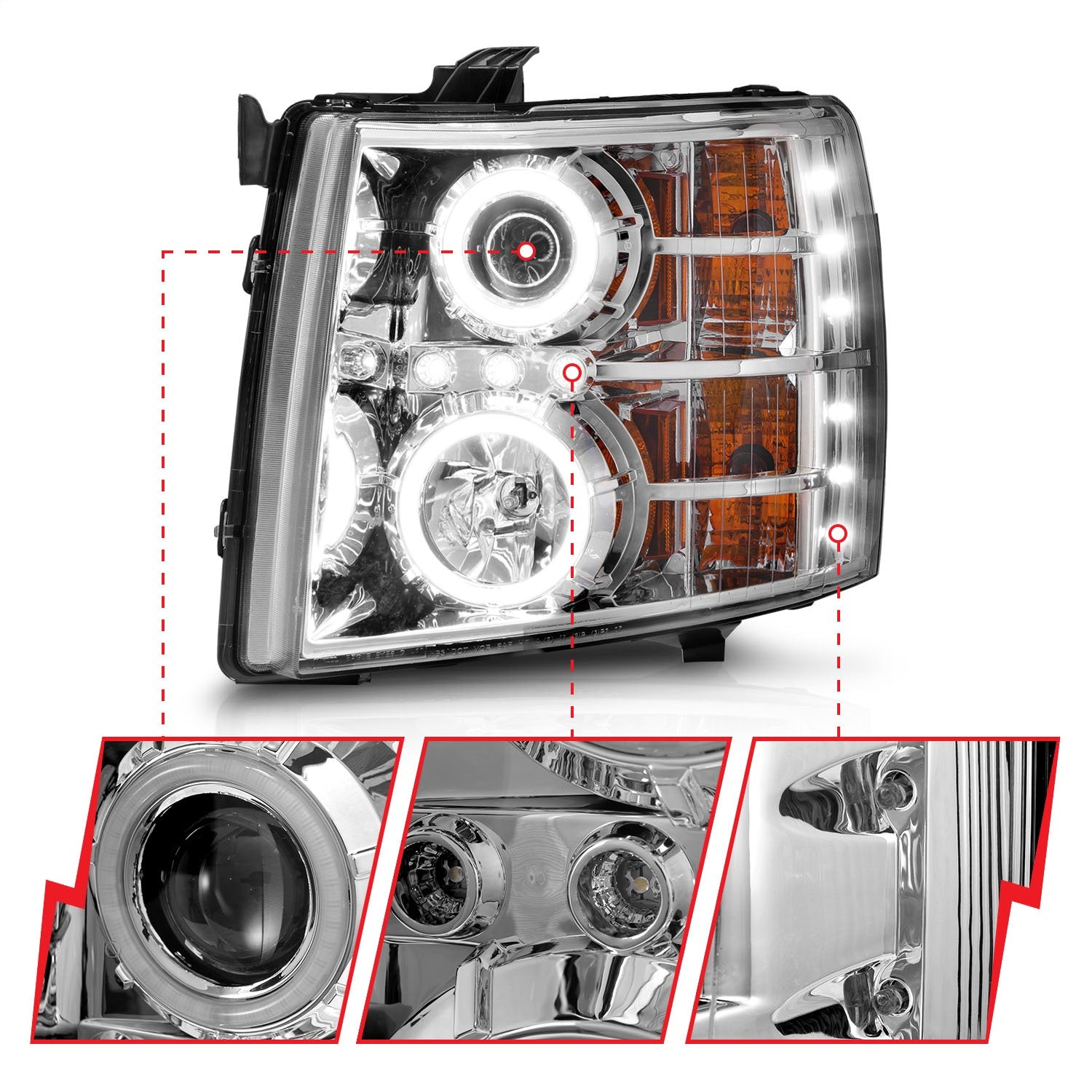Anzo 111086 - 2007-2013 Chevrolet Silverado 1500 Projector Headlights w/ Halo Chrome