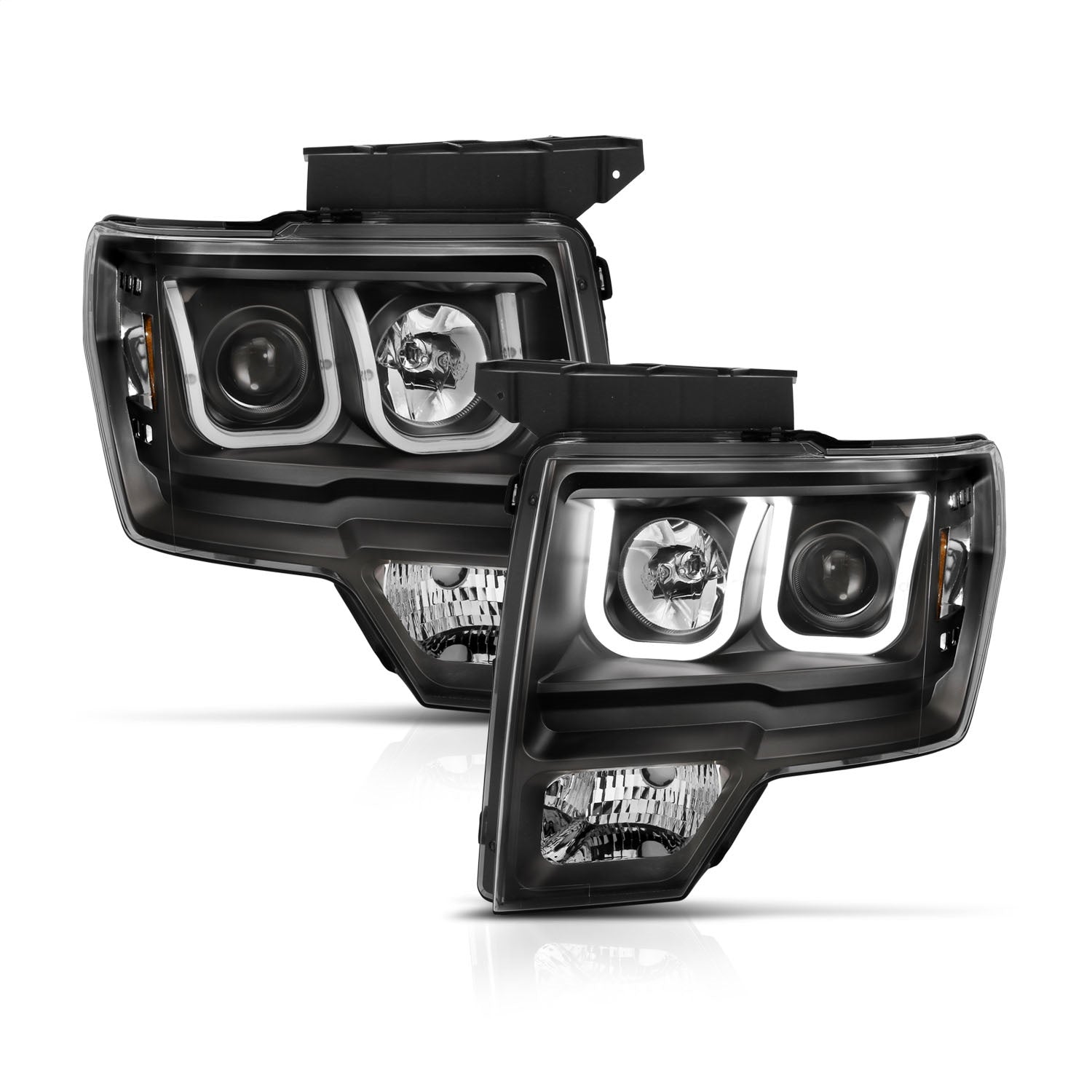 Anzo 111383 - 2009-2014 Ford F-150 Projector Headlights w/ U-Bar Switchback Black w/ Amber