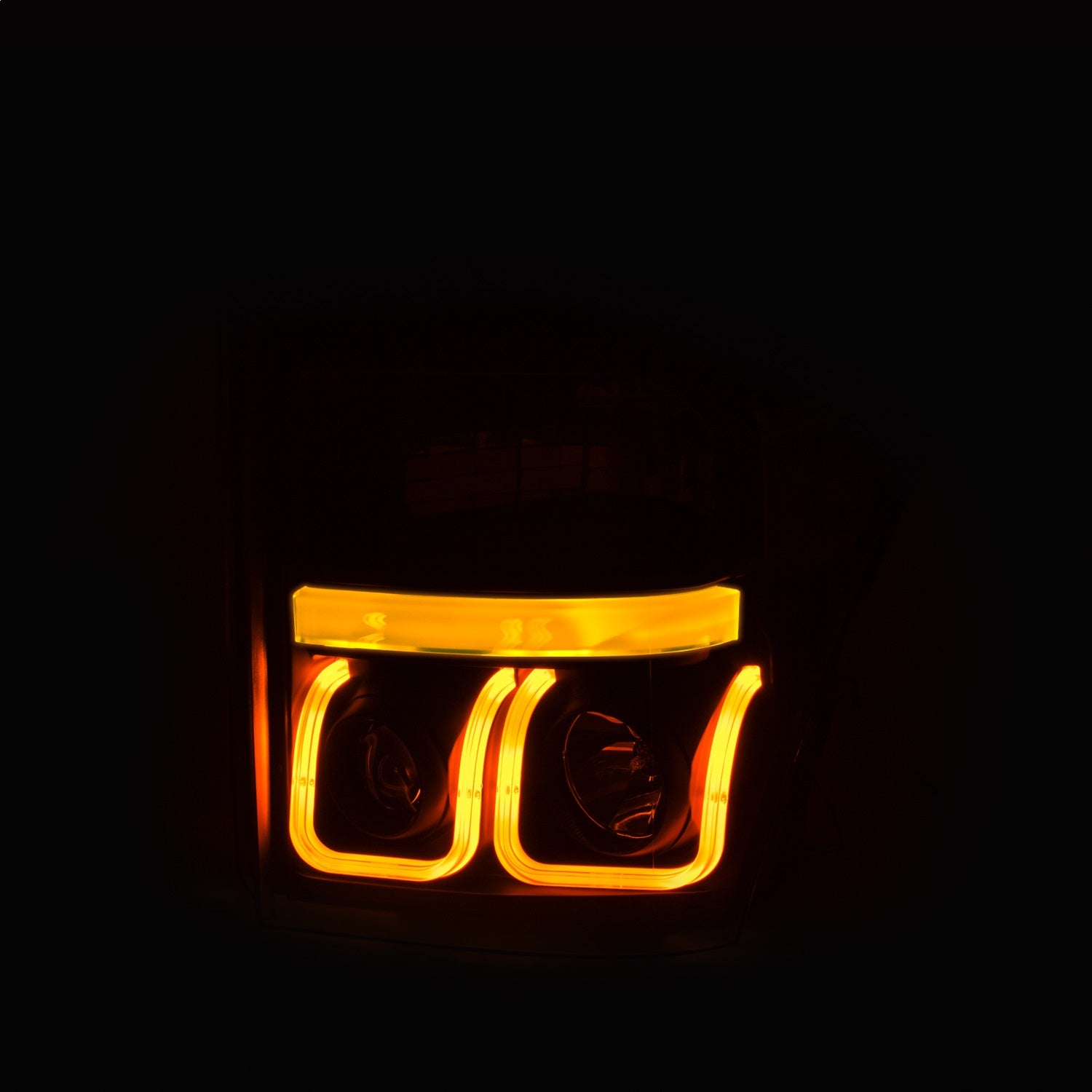 Anzo 111386 - 11-16 Ford F-150 Super Duty Projector Headlights w/ U-Bar Switchback Black w/ Amber