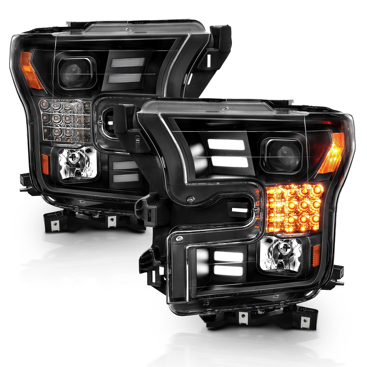 Anzo 111408 - 15-17 Ford F-150 Project Headlights w/ Plank Style Design Black w/ Amber Sequential Turn Signal