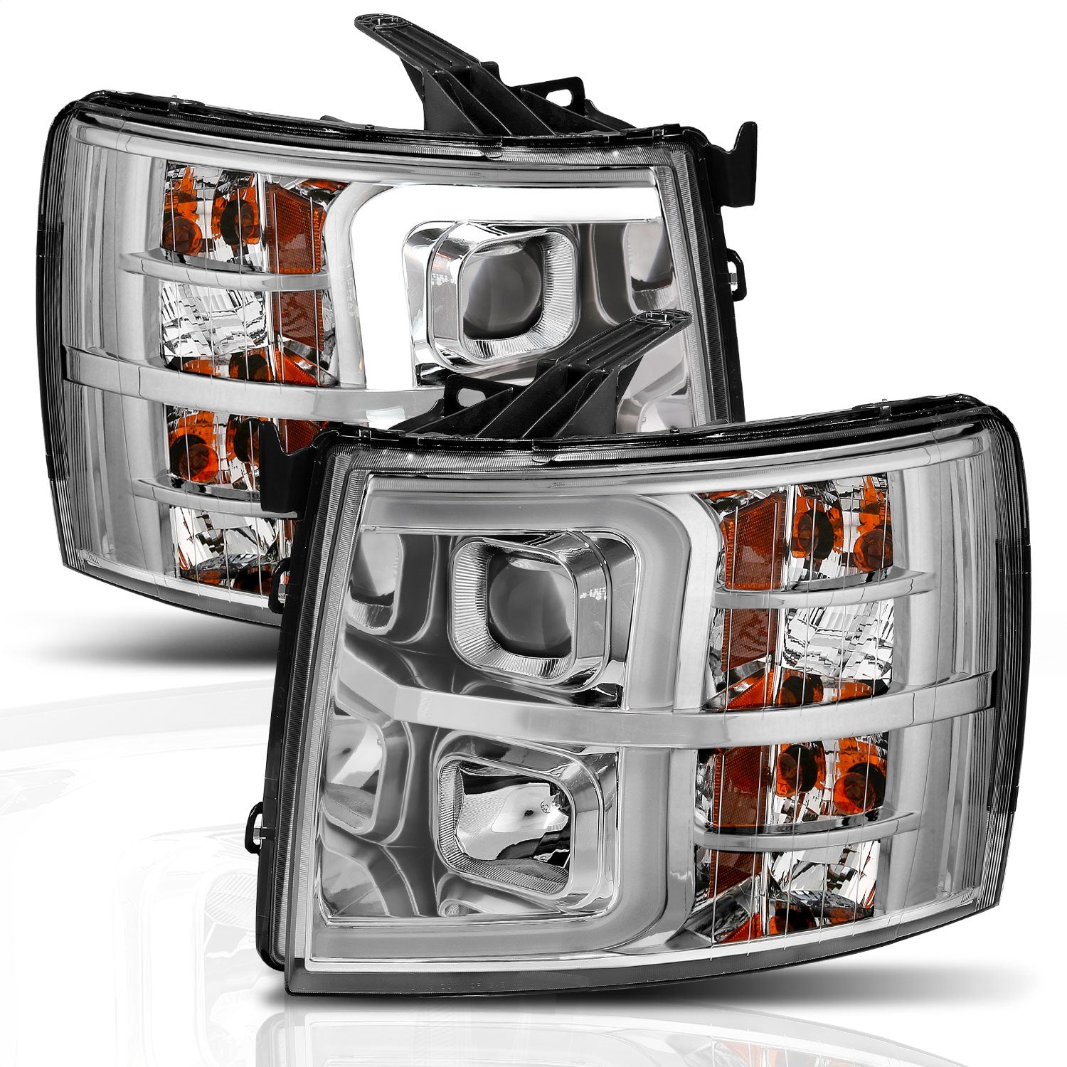 Anzo 111411 - 07-13 Chevrolet Silverado 1500/2500/3500 Proj Headlights w/ Plank Style Switchback Chrome w/Amb