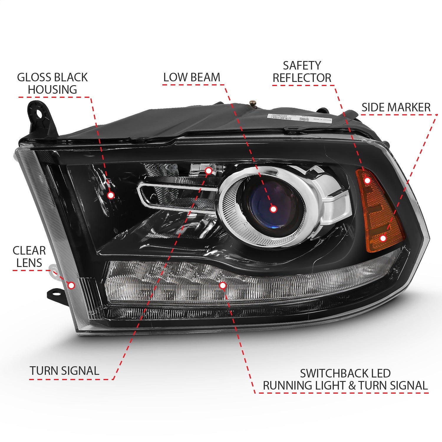 Anzo 111439 - 2009-2018 Dodge Ram 1500 Projector Plank Style Switchback H.L Halo Black Amber (OE Style)