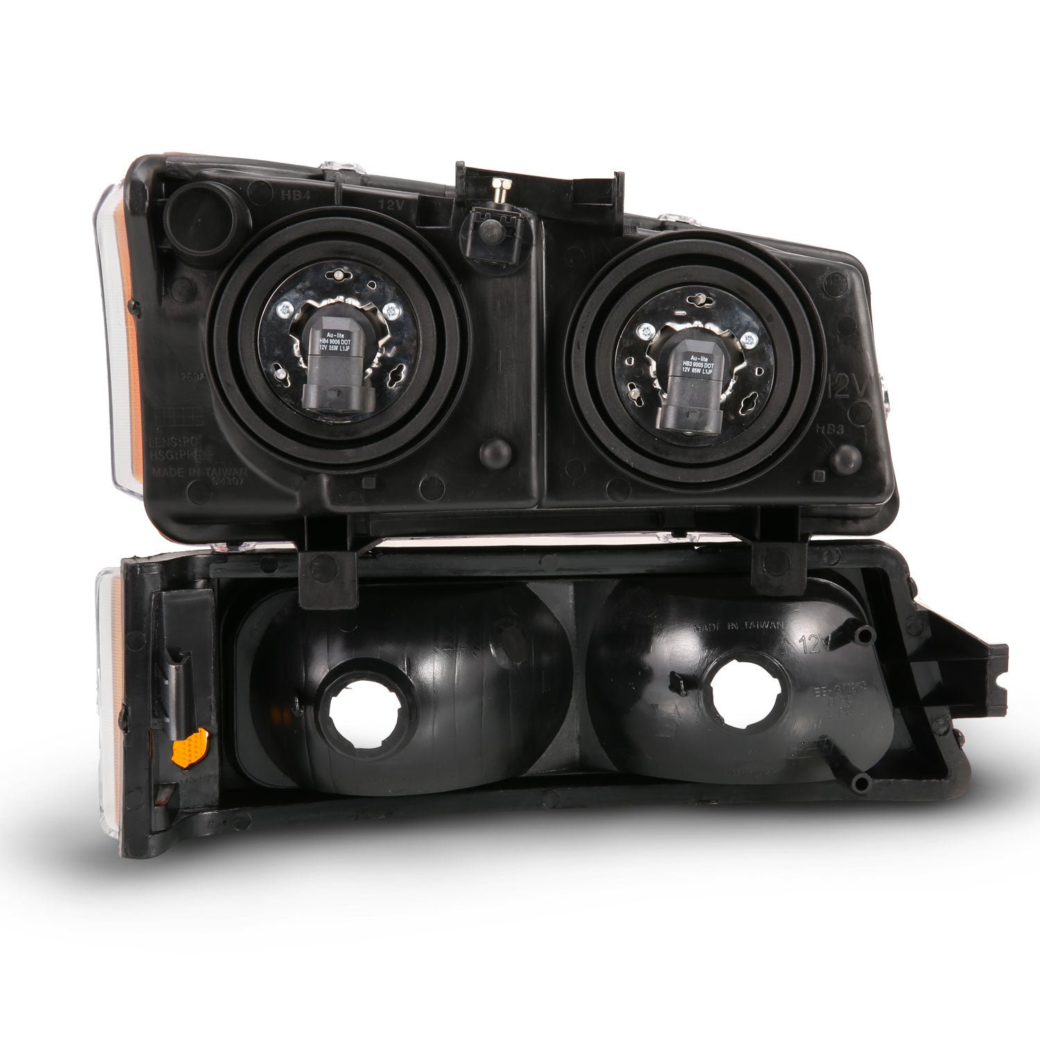 Crystal Headlight Set; Clear Lens; Black w/Amber Housing; 4PCS; w/Corner Lights; Pair;