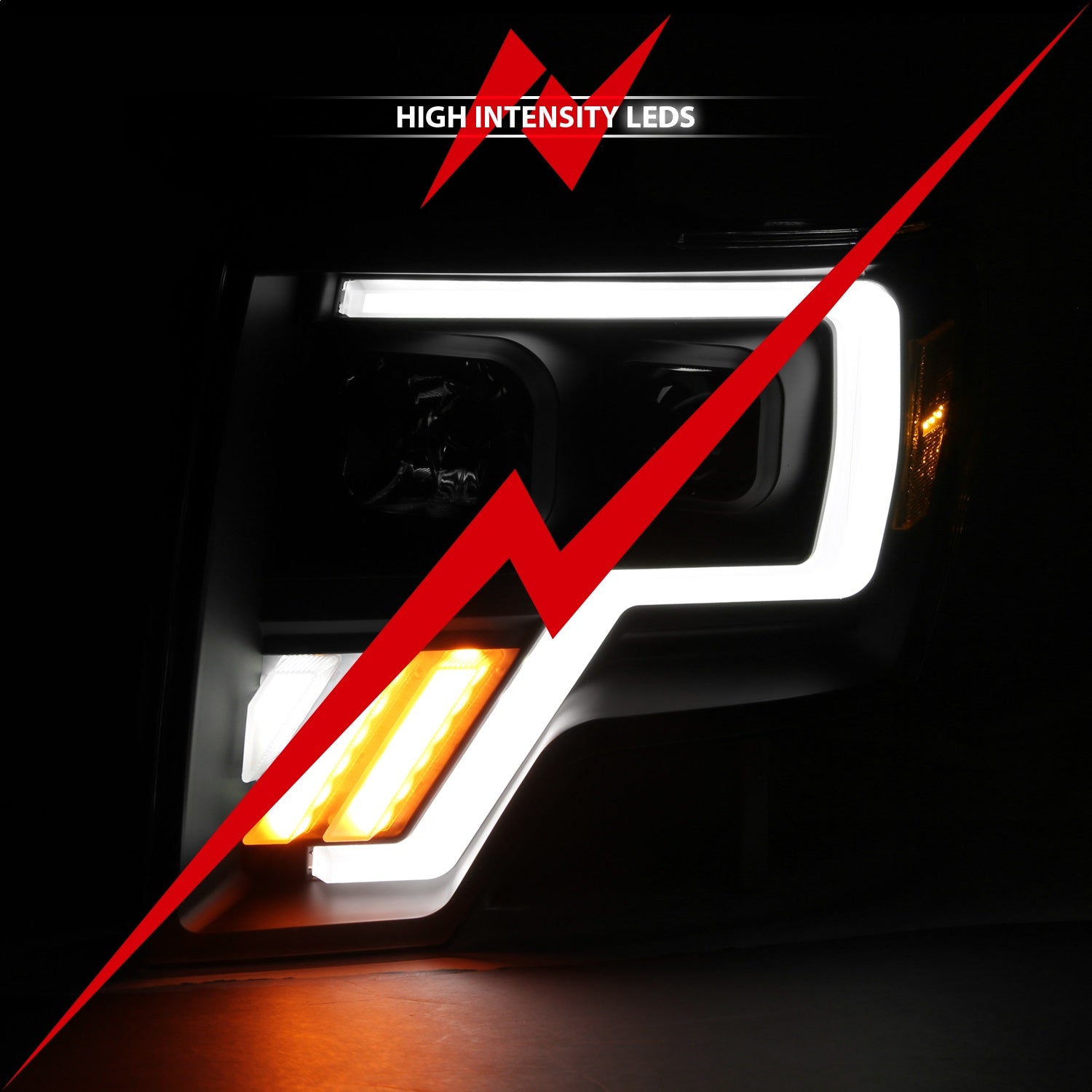 Anzo 111469 - 2009-2013 Ford F-150 Projector Light Bar G4 Switchback Headlights Black Amber