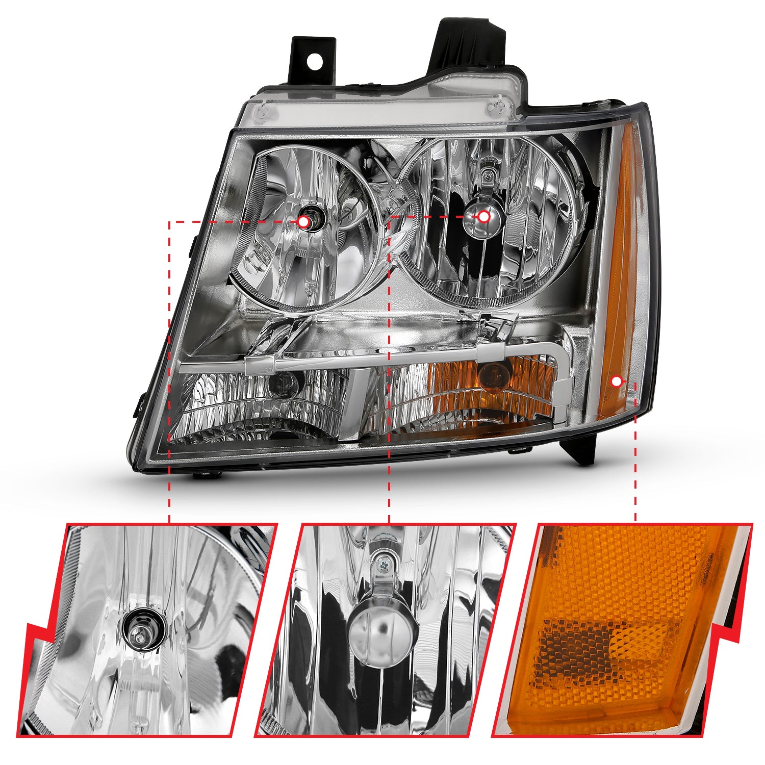 Anzo 111475 - 2007-2014 Chevy Tahoe Crystal Headlight Chrome Amber(OE)