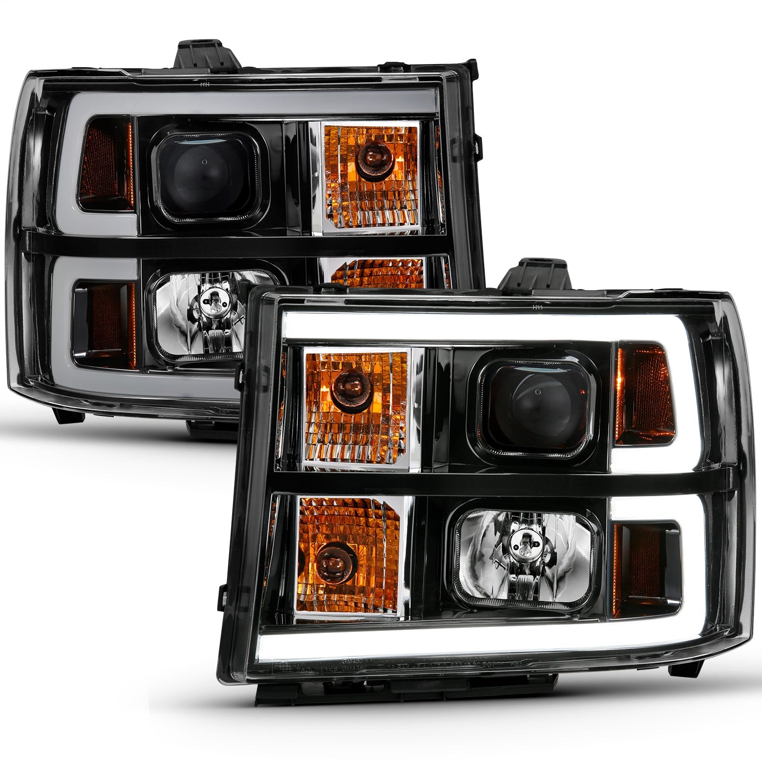 Anzo 111482 - 2007-2013 GMC Sierra 1500 Projector Headlight Plank Style Black w/ Clear Lens Amber