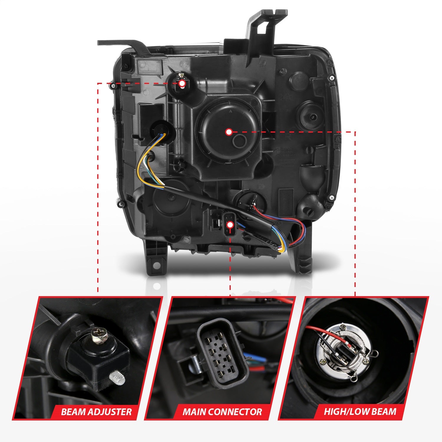 Anzo 111514 - 2014-2015 GMC Sierra 1500 Projector Headlights w/ Light Bar Chrome Housing (Halogen Type)