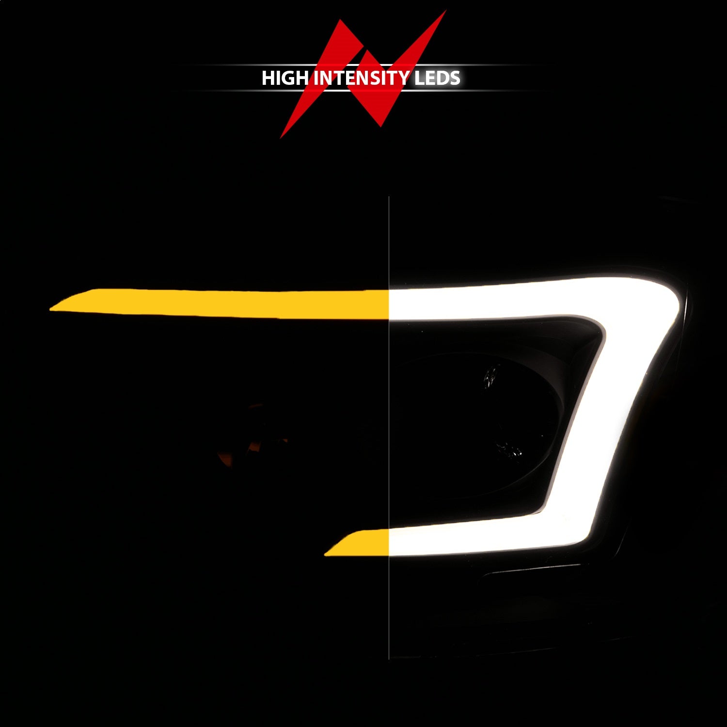 Crystal Headlight Set w/ Light Bar Style - Switchback - Black Housing - Clear Lens - Pair