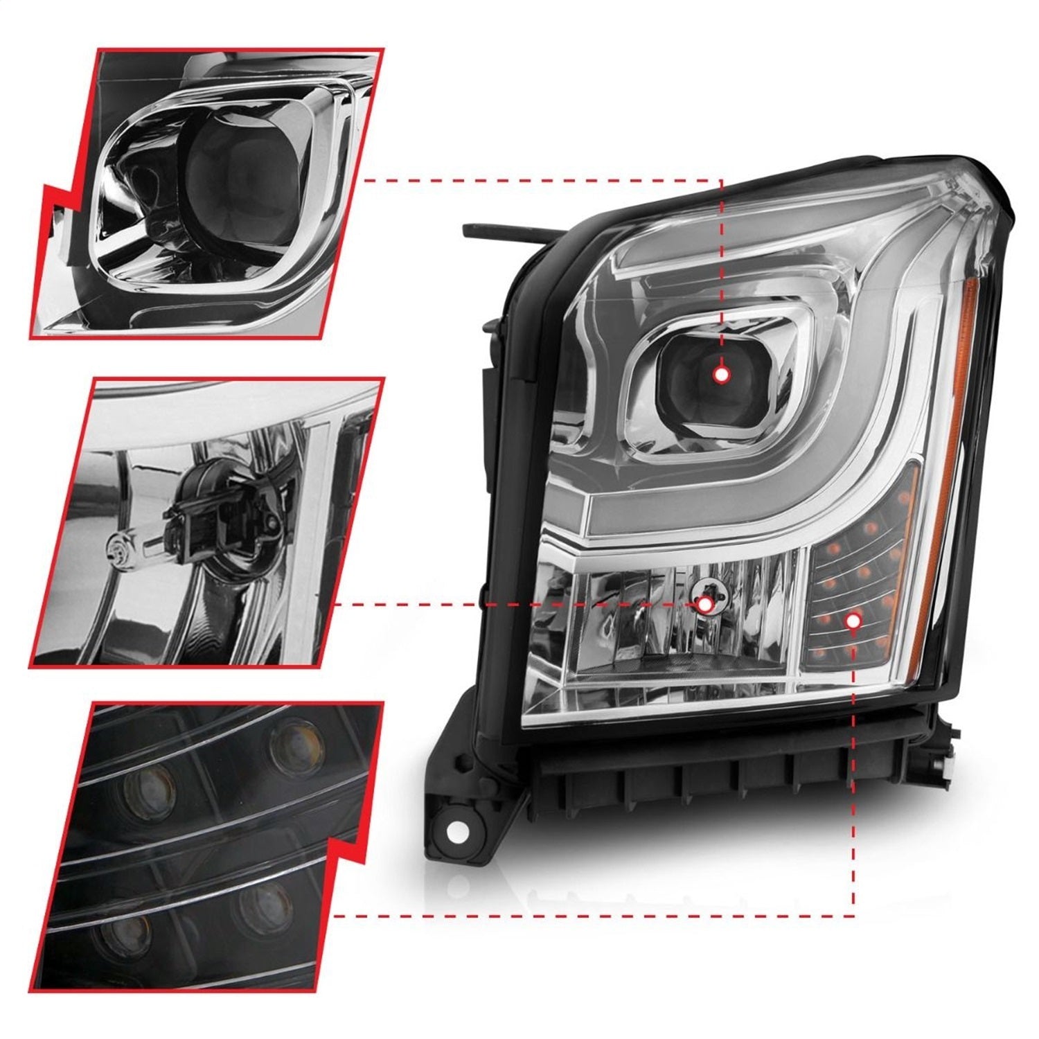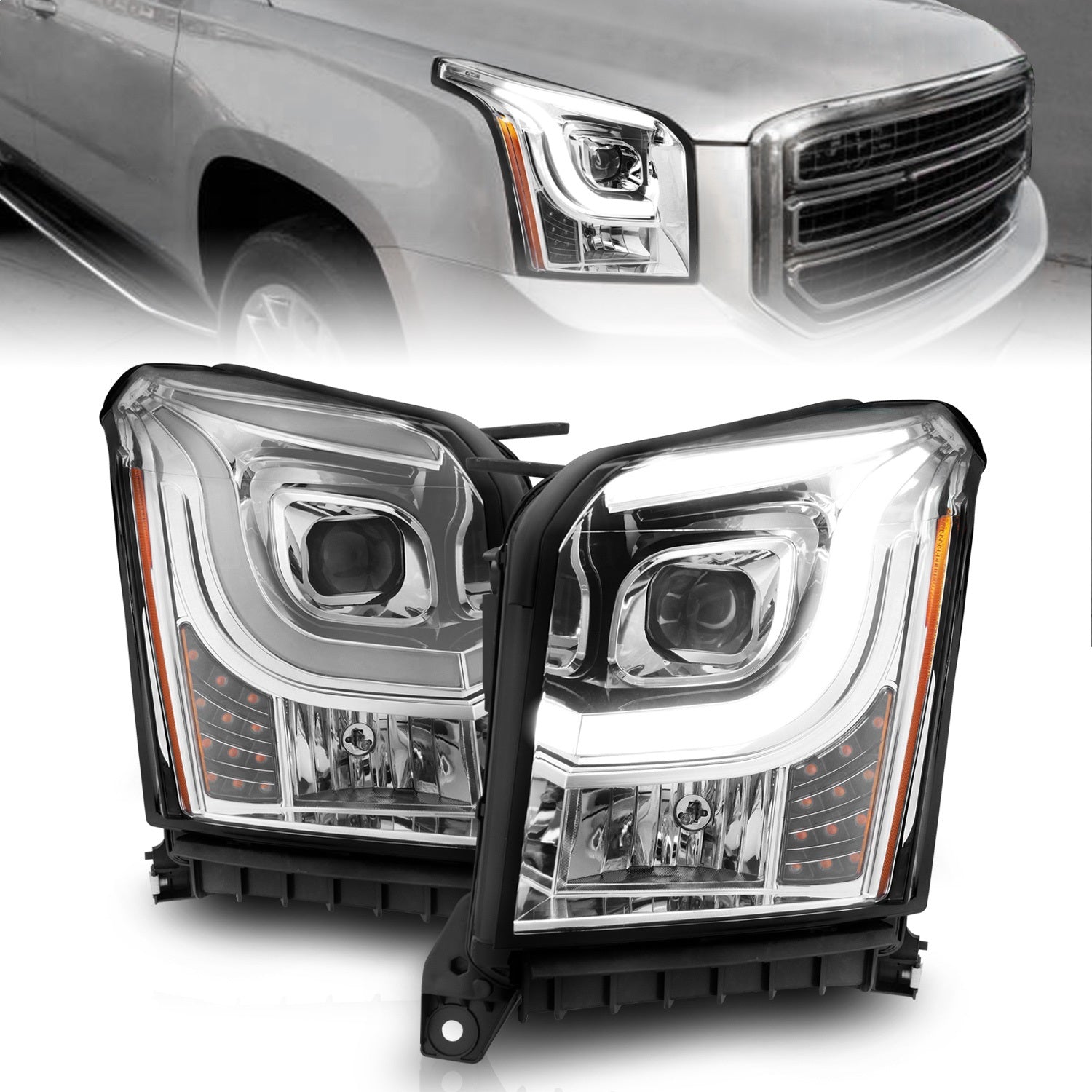 Anzo 111536 - 2015-2017 GMC Yukon XL Projector Headlights W Lightbar - Chrome/Amber