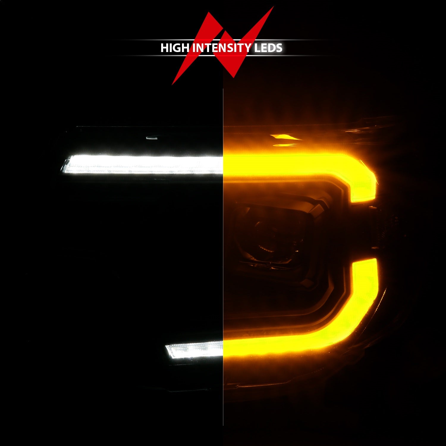 Projector Headlights w/ Light Bar Style - Switchback - Black Housing - Clear Lens - Pair