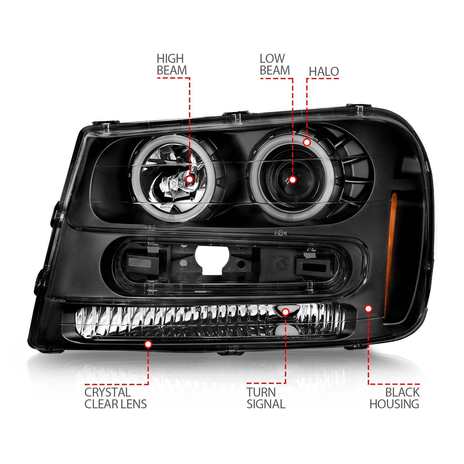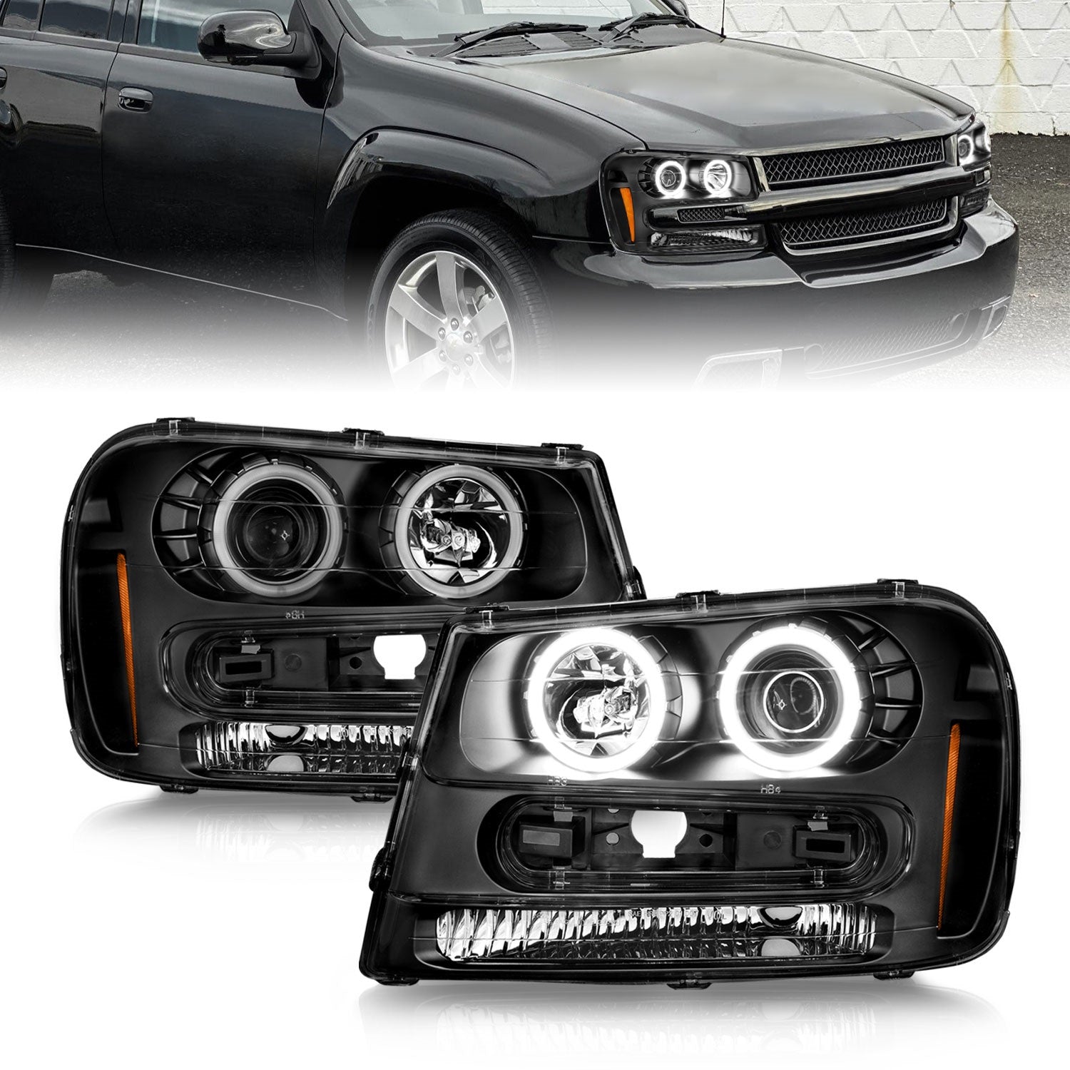 Anzo 111572 - 02-09 Chevrolet Trailblazer (Will Not Fit 06-09 LT) Projector Headlights w/Halo Black Housing