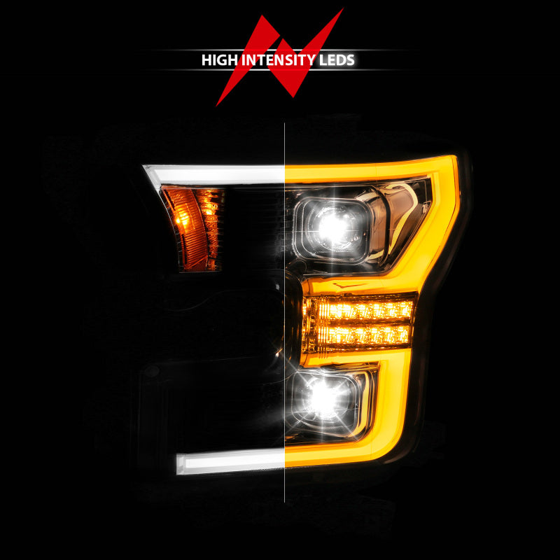 Anzo 111631A - 15-17 Ford F-150 (Factory Halogen Model ONLY) Full LED Proj Headlights Init/SeqSig Chrome- Pair