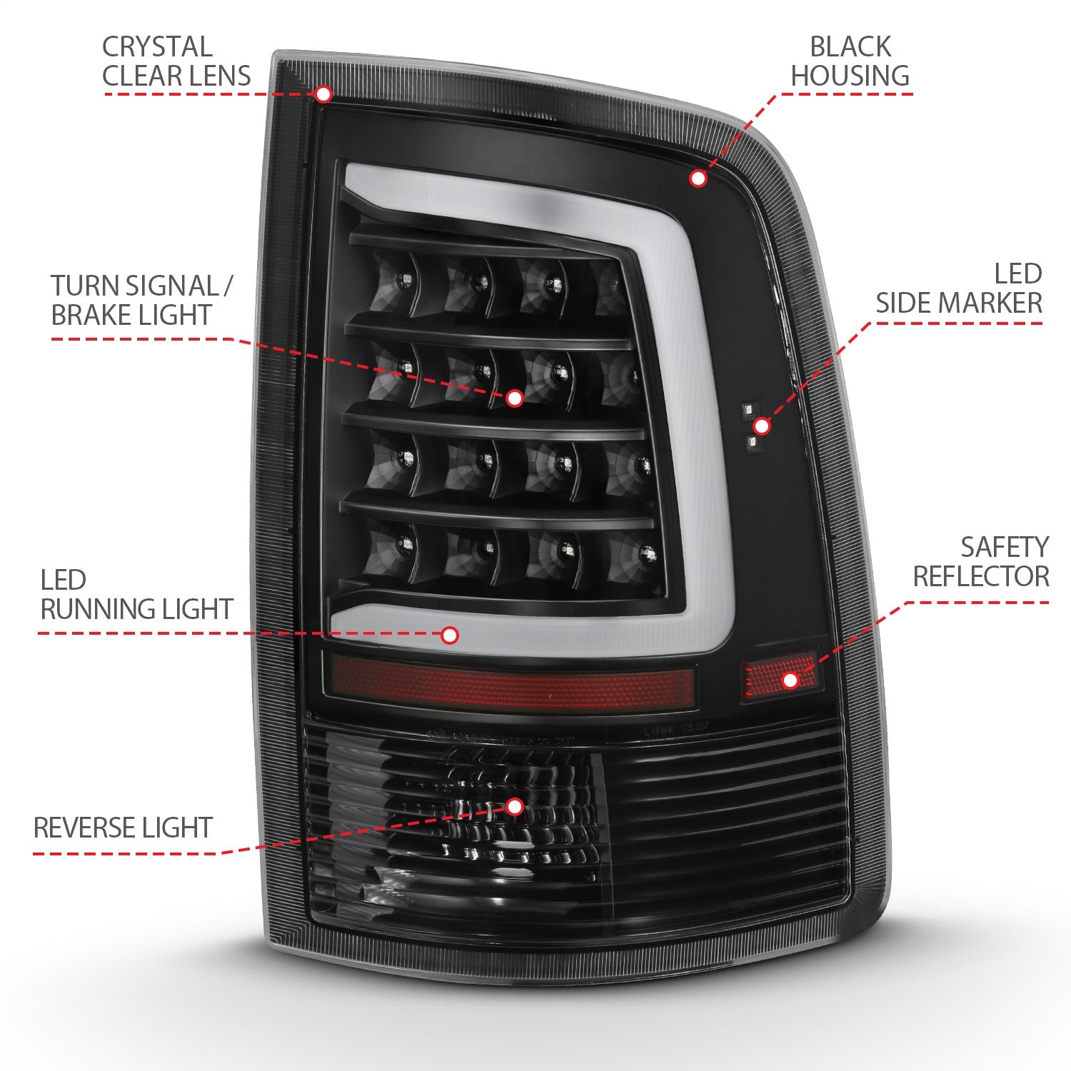 Anzo 311318 - 2009-2018 Dodge Ram 1500 LED Taillight Plank Style Black w/Clear Lens