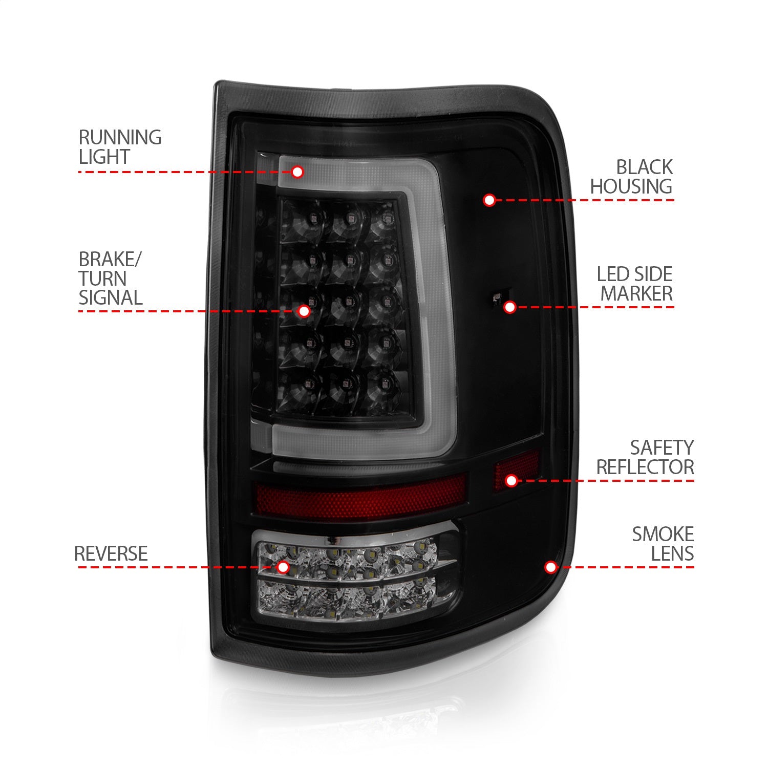 LED Tail Light Assembly; LED; Smoke Lens; Black Housing; w/Light Bar; Pair;