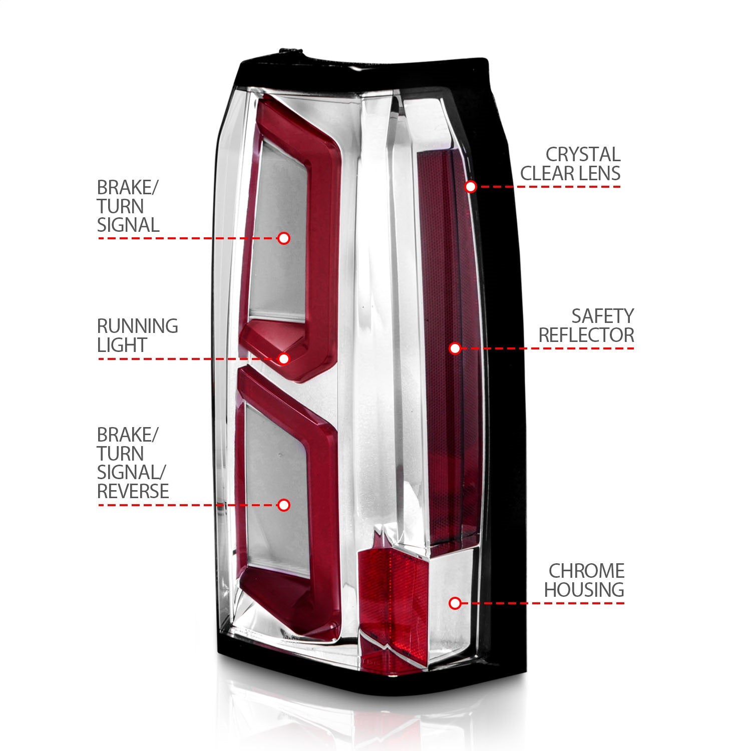 Anzo 311376 - 2015-2020 Chevrolet Tahoe LED Tail Lights w/ Light Bar Chrome Housing Clear Lens