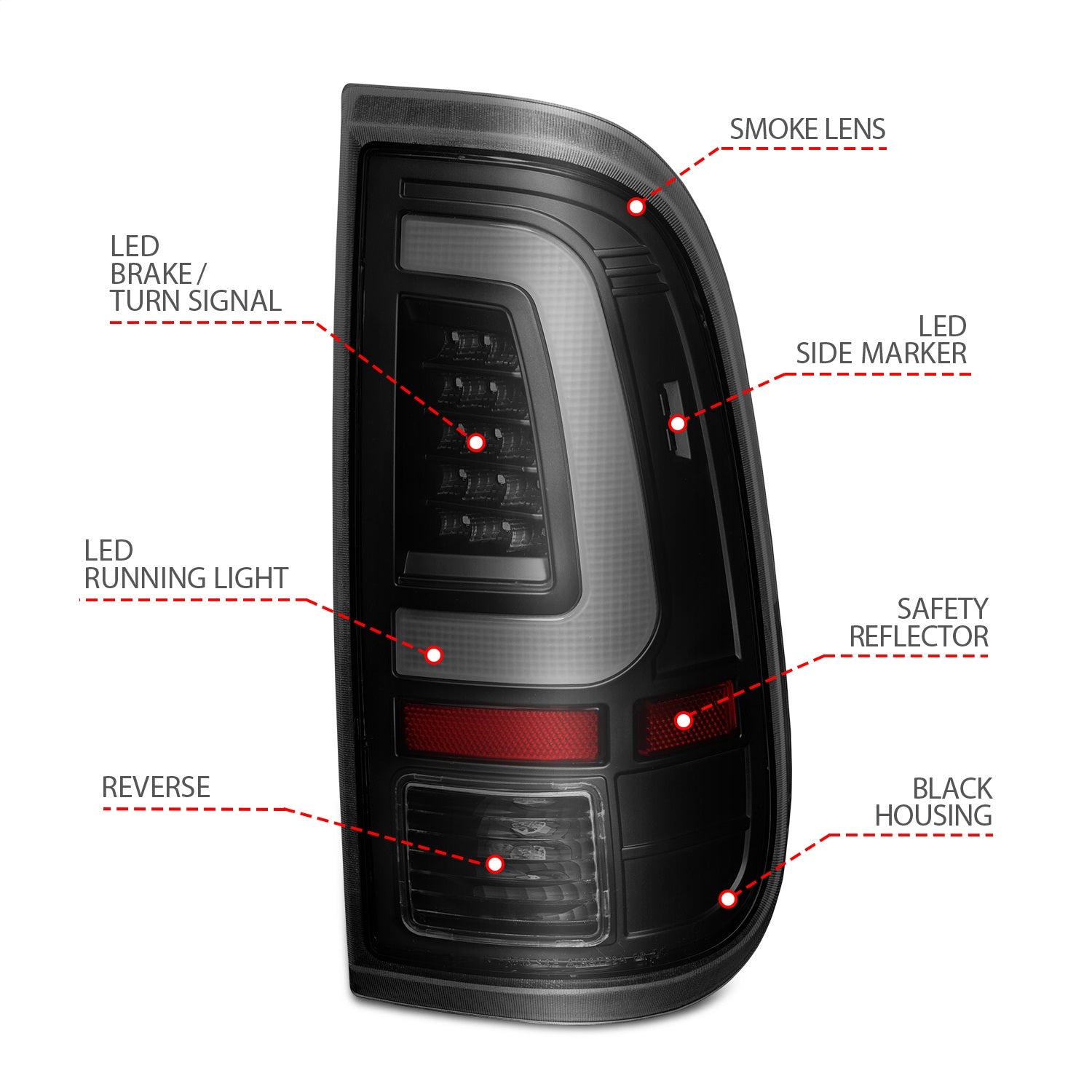 Anzo 311379 - 2008-2016 Ford F-250 LED Tail w/ Lights Bar Black Housing Smoke Lens