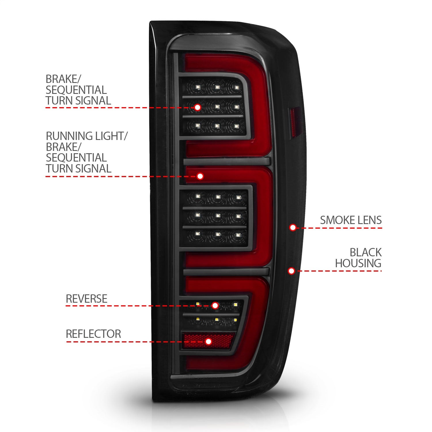 Tail Light Assembly - Full LED - LED Tube - Sequential Signal - Black Housing - Smoke Lens - Pair