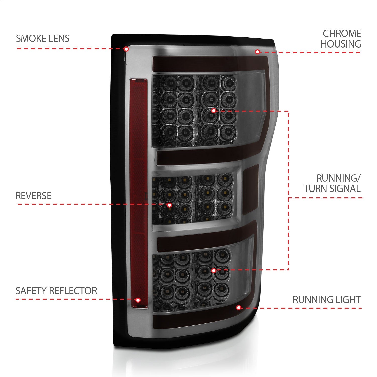 LED Tail Light Assembly; LED; Smoked Lens; Black Housing; Red/White Light Color; Pair;