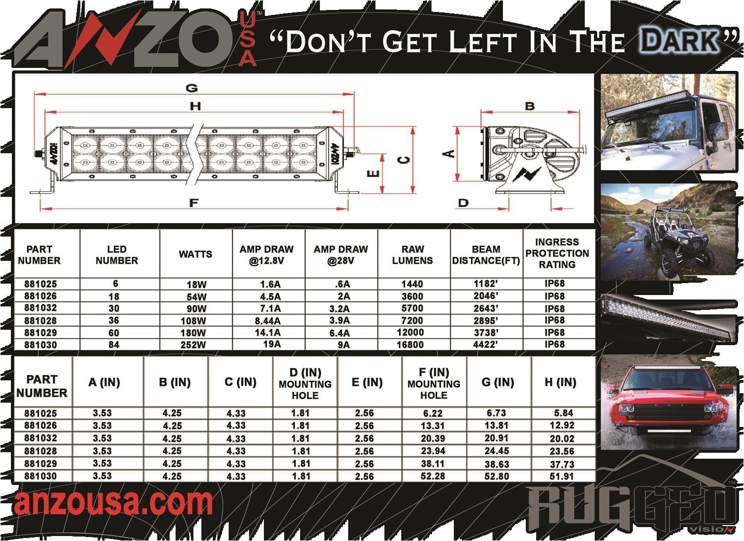 Anzo 881044 - Rugged Off Road Light 52in 3W High Intensity LED (Combo Spot and Flood)