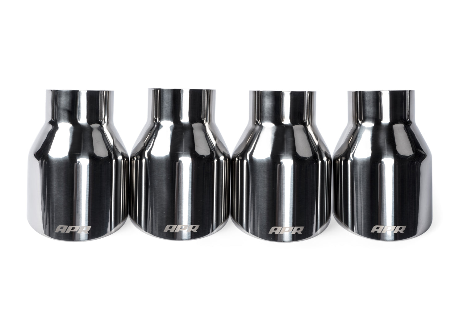 The APR Catback Exhaust System personalizes your vehicle's looks, sound and performance. Beautifully hand-crafted T304-stainless-steel components adorn the system with stunning TIG-welding throughout. Our straight-through brushed-finished mufflers smooth the exhaust note to a deep growl, without adding restrictions, while our Helmholtz resonator reduces unwanted frequencies. Strong high-quality bracketry and OEM-style clamps hold the system steadily in place, making the install or removal a snap, and fitment simple, yet precise. A cast 3" to quad 2.5" rear splitter creates an ultra-smooth transition, steadily feeding exhaust gasses out of the system, while looking tidy from under the rear bumper. Our cast valve housings enable the vehicle to be fitted with the factory electronic valve actuators, retaining OEM valve operation. Finally, removable 4" polished slash-cut exhaust tips finish the system, adding a classy motorsport-inspired touch to the rear of the vehicle.