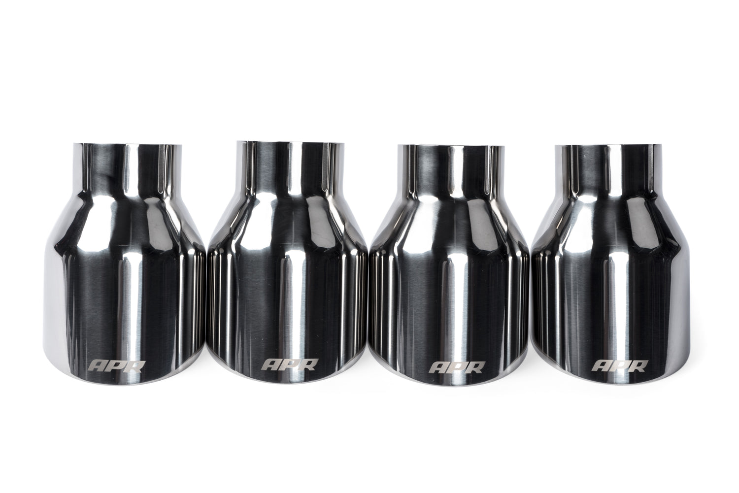 The APR Catback Exhaust System personalizes your vehicle's looks, sound and performance. Beautifully hand-crafted T304-stainless-steel components adorn the system with stunning TIG-welding throughout. Our straight-through brushed-finished mufflers are configurable to your desire, smoothing the exhaust note to a deep growl, without adding restrictions, rasp or drone. Strong high-quality bracketry and OEM-style clamps hold the system steadily in place, making the install or removal a snap, and fitment simple, yet precise. A cast 3 in. to dual 2.5 in. rear splitter creates an ultra-smooth transition, steadily feeding exhaust gasses out of the system, while looking tidy from under the rear bumper. Finally, removable 4 in. polished slash-cut exhaust tips finish the system, adding a classy motorsport-inspired touch to the rear of the vehicle.