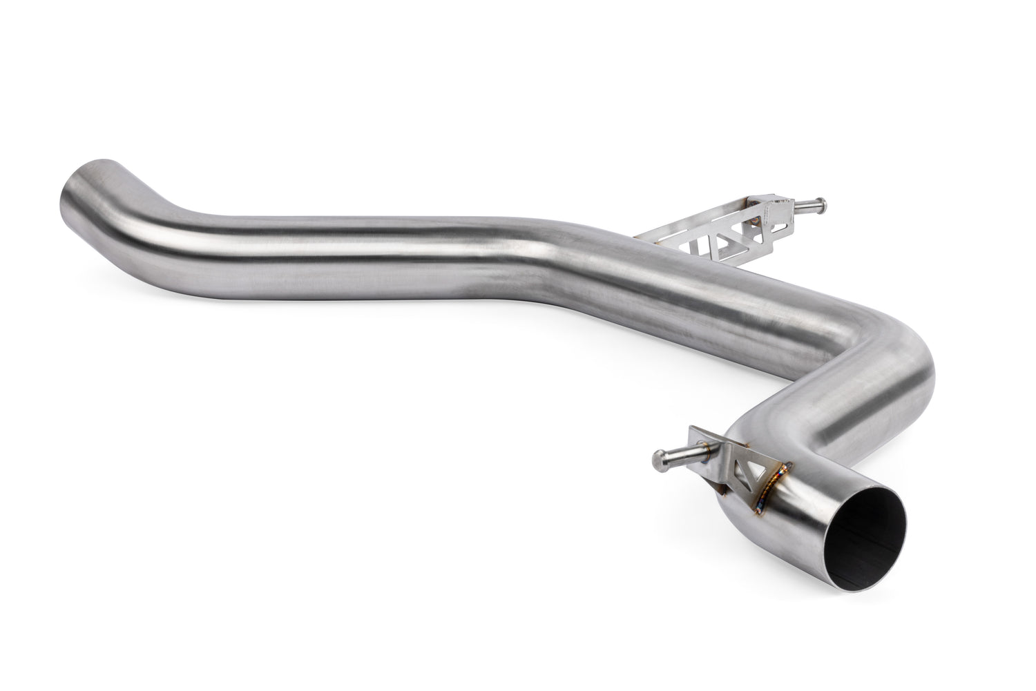 The APR Catback Exhaust System personalizes your vehicle's looks, sound and performance. Beautifully hand-crafted T304-stainless-steel components adorn the system with stunning TIG-welding throughout. Our straight-through brushed-finished mufflers smooth the exhaust note to a deep growl, without adding restrictions or rasp. Strong high-quality bracketry and OEM-style clamps hold the system steadily in place, making the install or removal a snap, and fitment simple, yet precise. 3" (76mm) mandrel-bent exhaust paths provide an ultra-smooth path, steadily feeding exhaust gasses out of the dual 2.5" (63.5mm) exit pipes, while looking tidy from under the rear bumper. Finally, removable 4" (102mm) polished slash-cut exhaust tips finish the system, adding a classy motorsport-inspired touch to the rear of the vehicle.