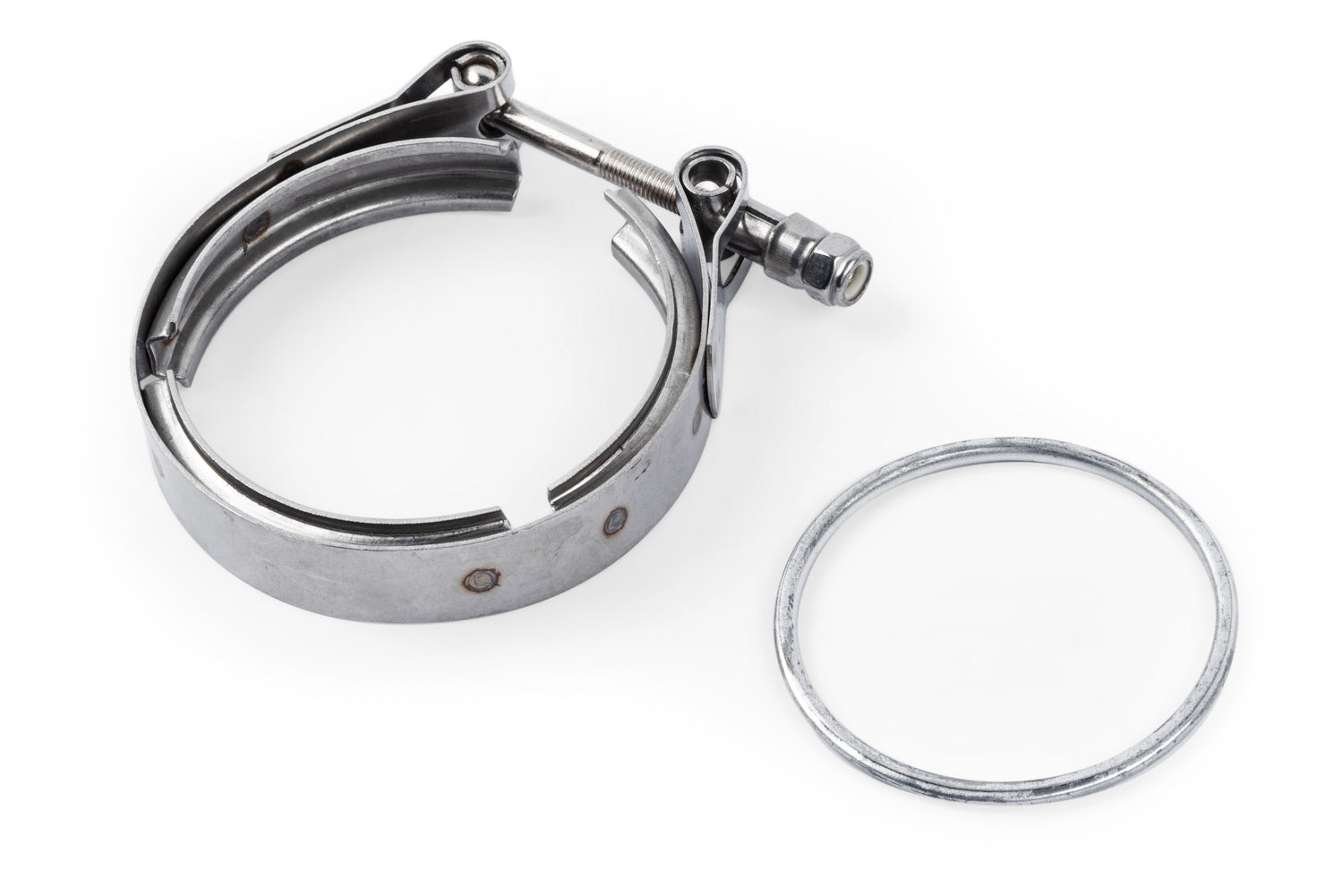 Replacement v-band clamp and gasket for APR exhaust systems.