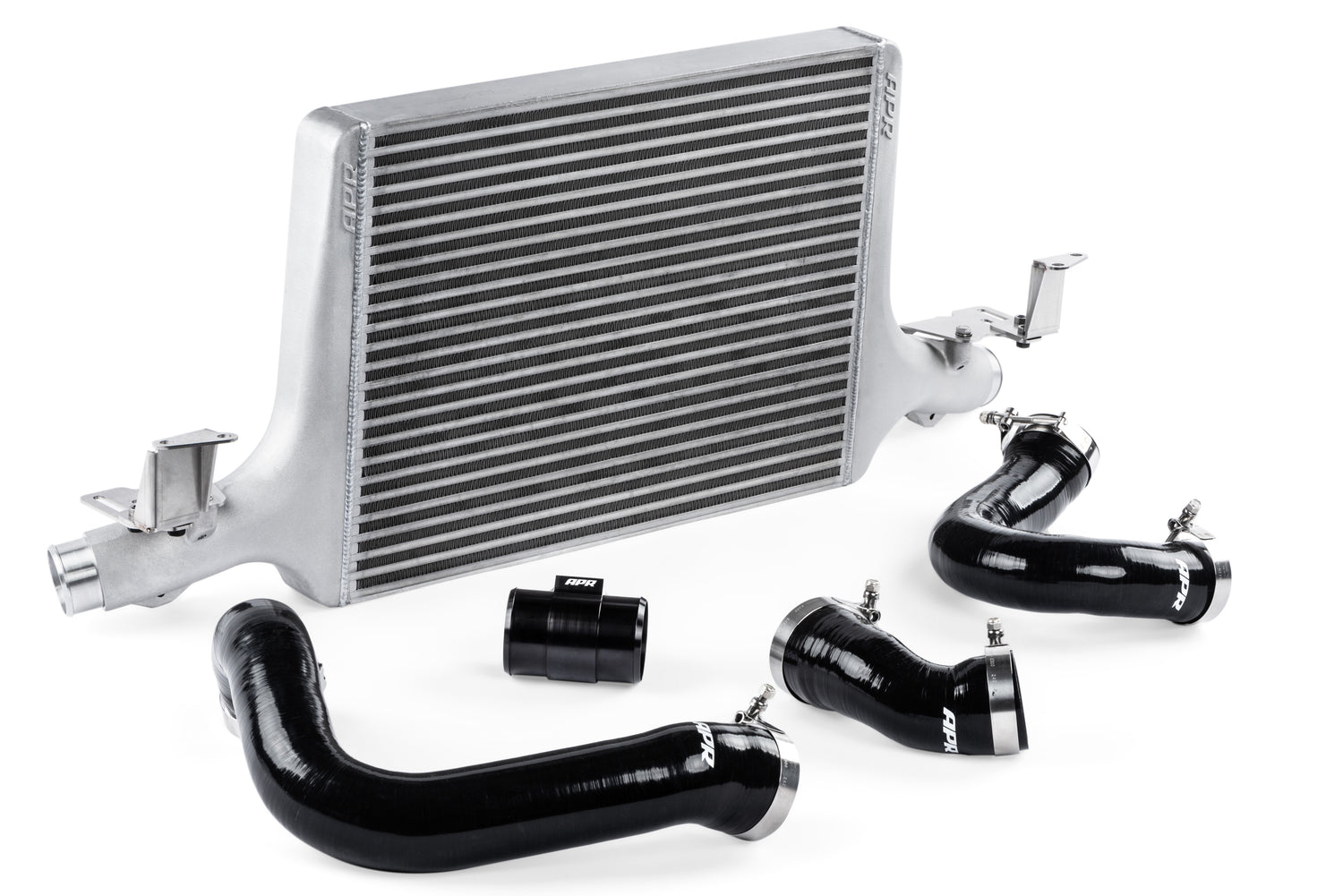 The APR Intercooler System is a massive front mounted upgrade that dramatically reduces intake air temperature (IAT), minimizes heat soak, and provides increased performance! The system is an easy to install, direct bolt-on design, that is recommended at every stage of performance.