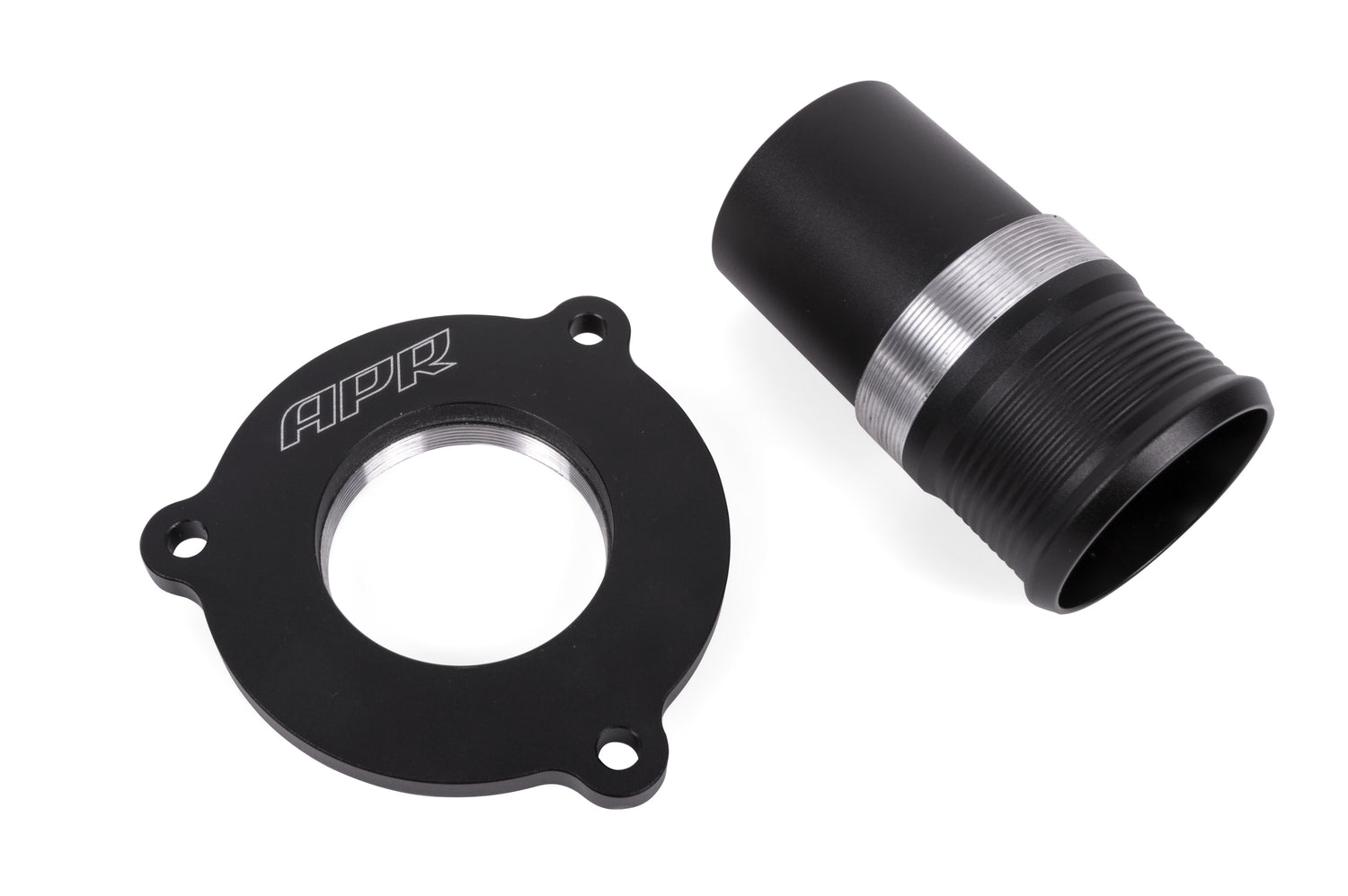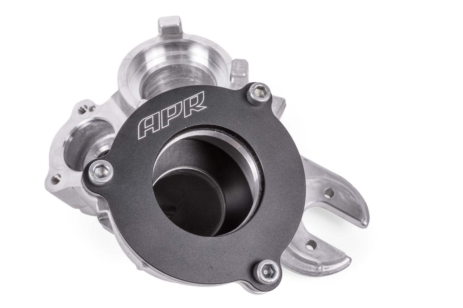 APR's 2-piece design solves this issue with an adjustable height design. While a 2-piece design is more difficult and expensive to manufacture, it's the only way to ensure an accurate fit and perfect seal. APR provides a Viton seal that's placed at the bottom of the muffler housing. The muffler cover is then installed forming a seal with the factory gasket. Then, the center tube is inserted and screwed into place to the desired depth, compressing against the Viton seal to ensure a leak proof seal in every scenario. Finally Tension from the seal prevents the tube from coming loose, and the included Loctite provides extra security from movement. With the turbo muffler deleted, the APR design provides a smooth, turbulence free, and leak proof path for airflow existing the turbo!