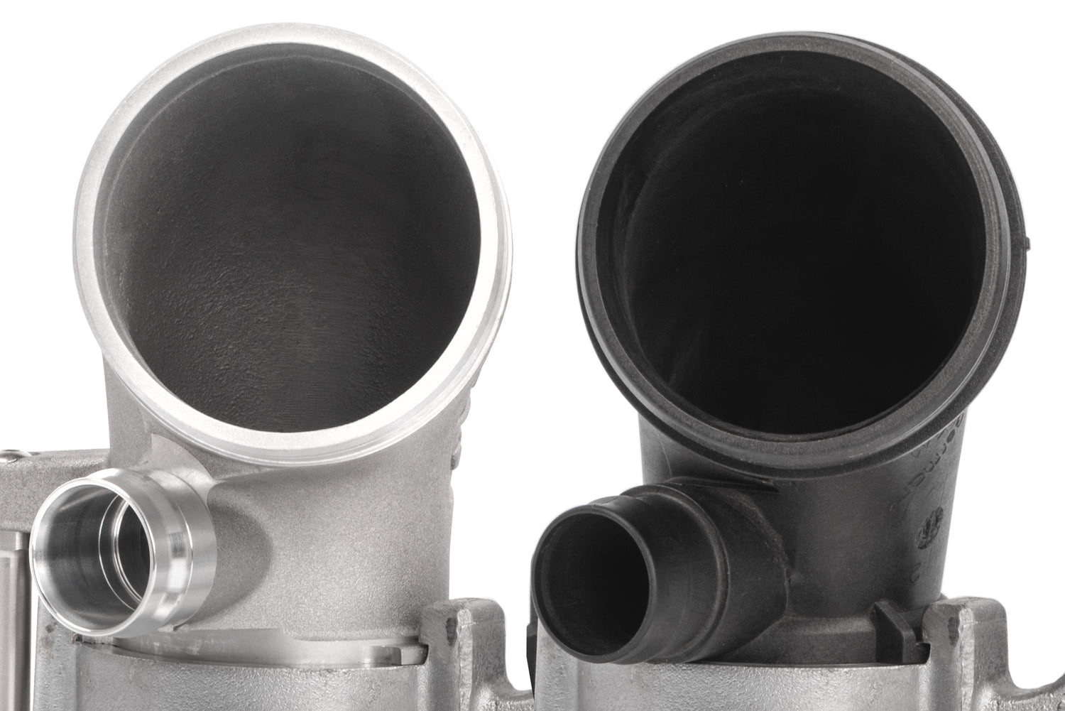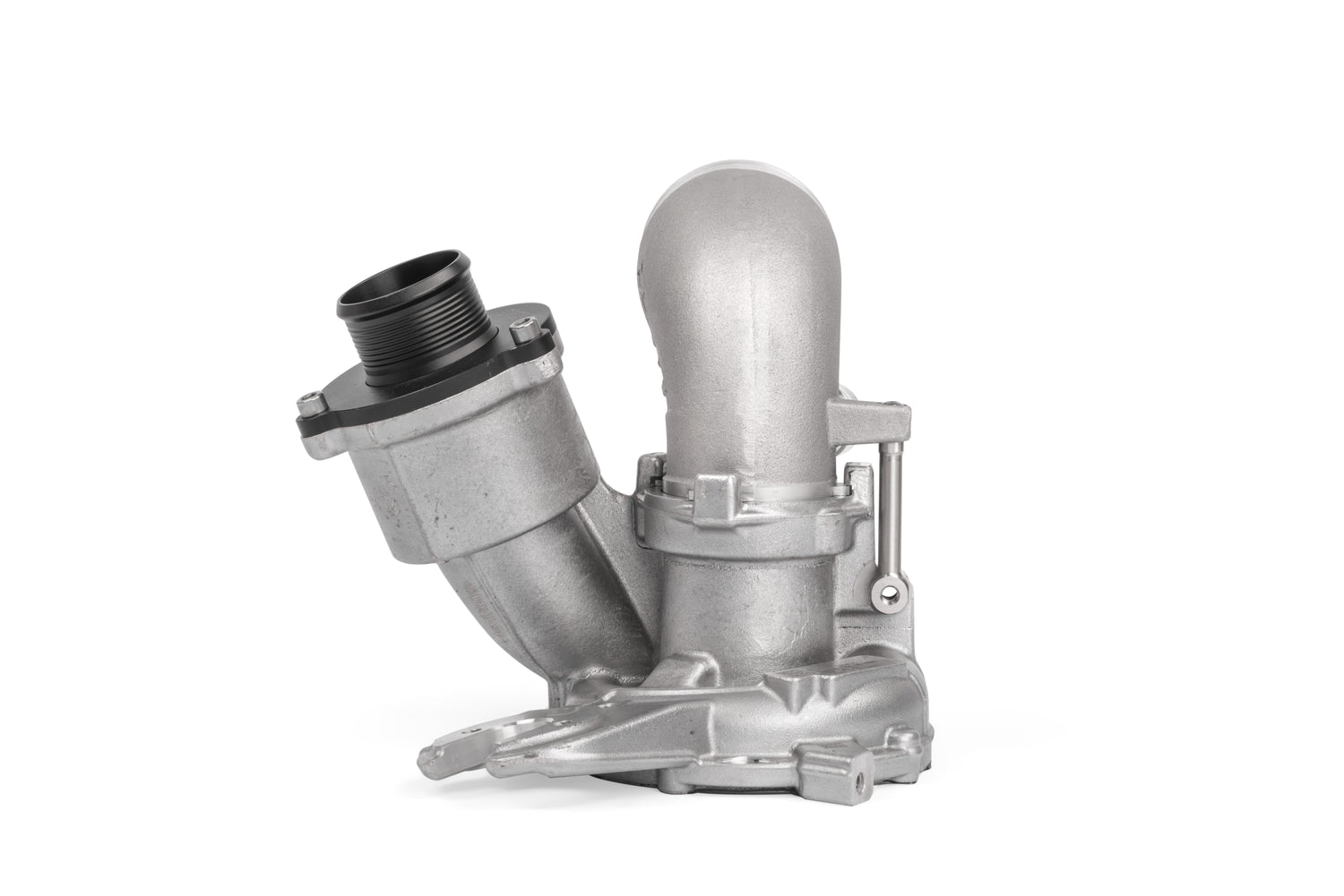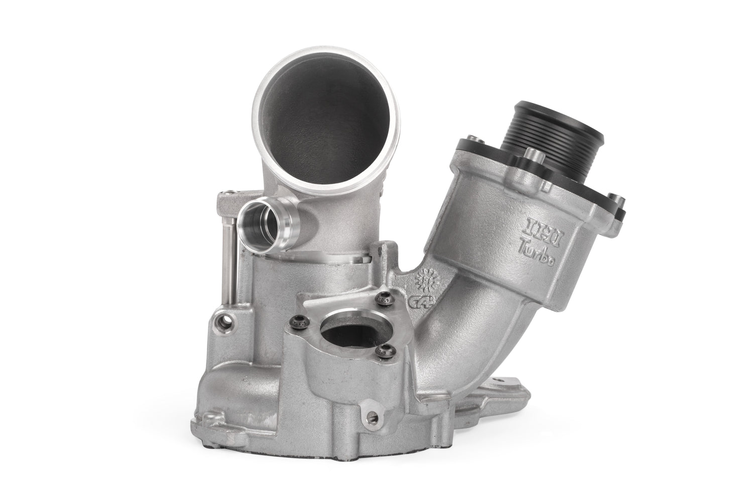The APR Turbo Inlet Pipe is an easy-to-install bolt-on upgrade that eliminates a restriction before the turbocharger. Unlike fabricated units on the market today, ours is cast from aluminum, allowing for an organically shaped inlet that transitions gradually over a large distance. Such a design promotes better flow rather than abruptly reducing at the turbocharger's inlet like other units. It's larger than stock throughout, removes a large internal restriction at the PCV inlet, and outflows the factory unit allowing the turbocharger to operate more efficiently. We fully assemble each unit with a billet securing arm, billet PCV bung and new o-ring. The inlet and outlet are CNC-machined to control tolerances and ensure snug and secure connections. This upgrade is recommended at all stages utilizing an IHI IS12, IS20 or IS38 turbocharger!