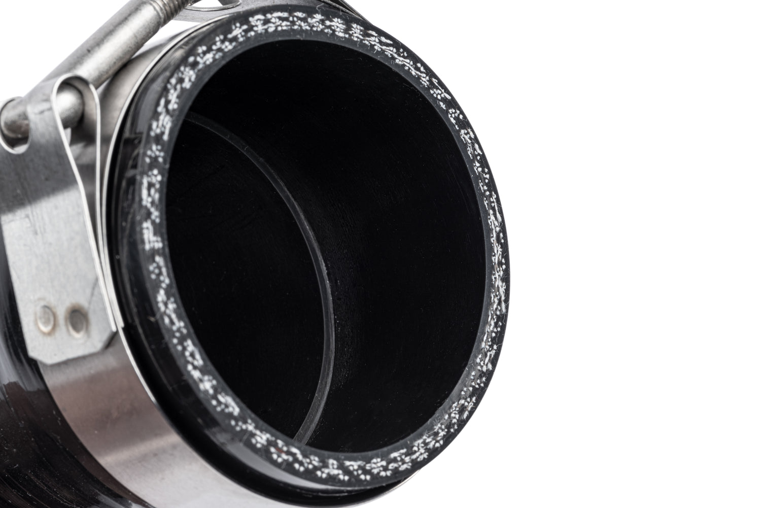 The APR Charge Pipe System is a comprehensive, direct replacement upgrade, to the factory system. The factory plastic and rubber turbo outlet pipe is a small and restrictive 38mm pipe that has shown to melt, deform, and cause boost leaks under extreme conditions. The APR System remedies this by upgrading the system to a larger 60mm aluminum pipe, along with a new multi-ply Fluorosilicone coated turbocharger outlet hose. APR EZ-Flow stepped lip hoses provide a smooth transition from hose to pipe, and the included T-bolt clamps ensure a strong and leak-resistant seal at the pipe. All brackets are TIG-welded for a strong and precise fit, and the pipe is coated black. A protruding lip at the edge of the pipe helps prevent hose slippage. This pipe is a direct fit to the OEM turbocharger and the APR or OEM Intercooler hose. APR Recommends upgrading the Intercooler hoses as well for maximum performance and reliability. We upgrade the factory plastic with a strong 60mm aluminum pipe. Due to the thin-walled nature of metal vs plastic, were able to increase the internal diameter of the pipe to maximize airflow. The MAP sensor mounting point is made from CNC-machined billet-aluminum. All brackets are TIG-welded for a strong and precise fit, and the pipe is coated black. A protruding lip at the edge of the pipe helps prevent hose slippage. This pipe is a direct fit to the APR or OEM throttle body hose, as well as the APR or OEM Intercooler hose. APR recommends upgrading the throttle body and Intercooler hoses as well for maximum performance and reliability.