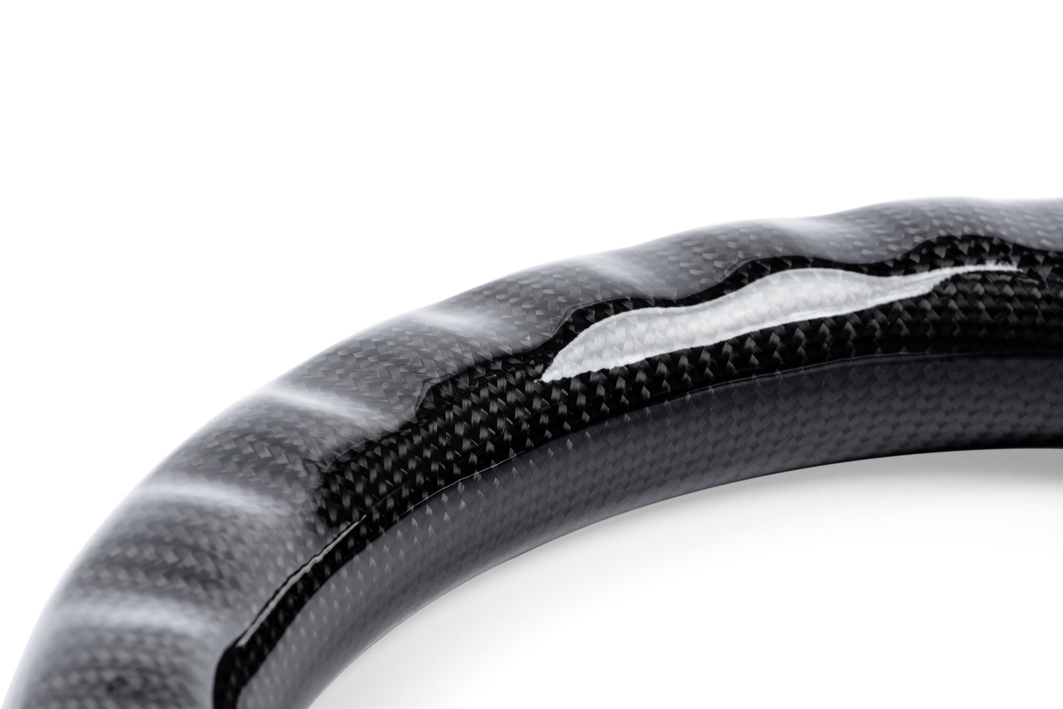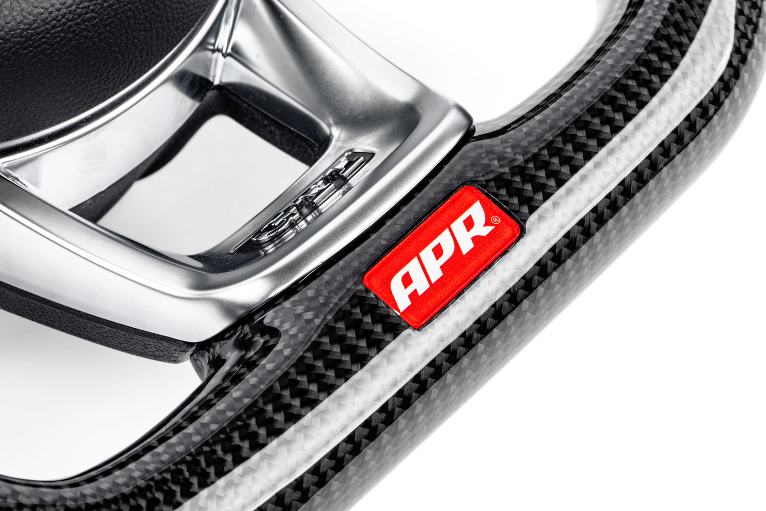 The APR Steering Wheel is beautiful, functional, and convenient to purchase. The top and bottom sections feature a carbon fiber weave, and the sides are Motorsport inspired perforate leather with color matched stitching. The deep pocketed palm and thumb grooves on the sides give you a confidence-inspiring grip, and feel comfortable in your hands, as do the ergonomically shaped finger grooves at the top rear of the wheel. Beautifully cross stitched threads give the leather section an extra elegant touch that matches your interiors stitching. And lastly, the flat bottom gives you extra room for your legs, while also letting you know if the wheel is straight or not when tracking the car. Simply put, weve made personalizing your steering wheel easy. This is our own design. We don't modify or wrap your existing wheel. We ship you a new wheel and you swap over your factory controls and airbag. Theres no months of downtime without your car to ship out and modify your existing wheel, and there are no core fees. Simply swap, install, and enjoy!