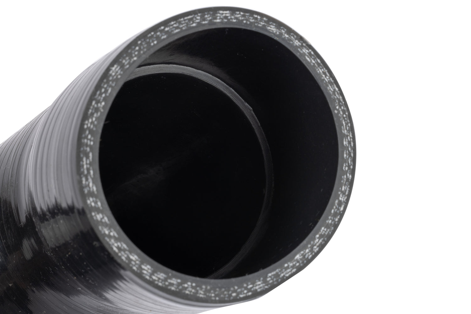 The APR Turbo Outlet Hose replaces the factory rubber hose and worm-gear clamps with a high quality multi-ply silicone hose and strong Clampco T-bolt clamps. The interior of the hose is smooth and lined with a fluorosilicone material designed to resist oil degradation and extend component life. EZ-Flow stepped lips within the hose allows for a smooth connection from hose to pipe for uninterrupted airflow. We pay close attention to the airflow path and provide as few bends and tight radius turns as possible. Furthermore the hose material adheres to its mating surface under high temperature to help create a stronger leak and slip free connection. This all results in a more reliable setup and increased performance through a smooth and strong uninterrupted airflow path. This hose is compatible with both OEM and upgraded APR charge pipes.