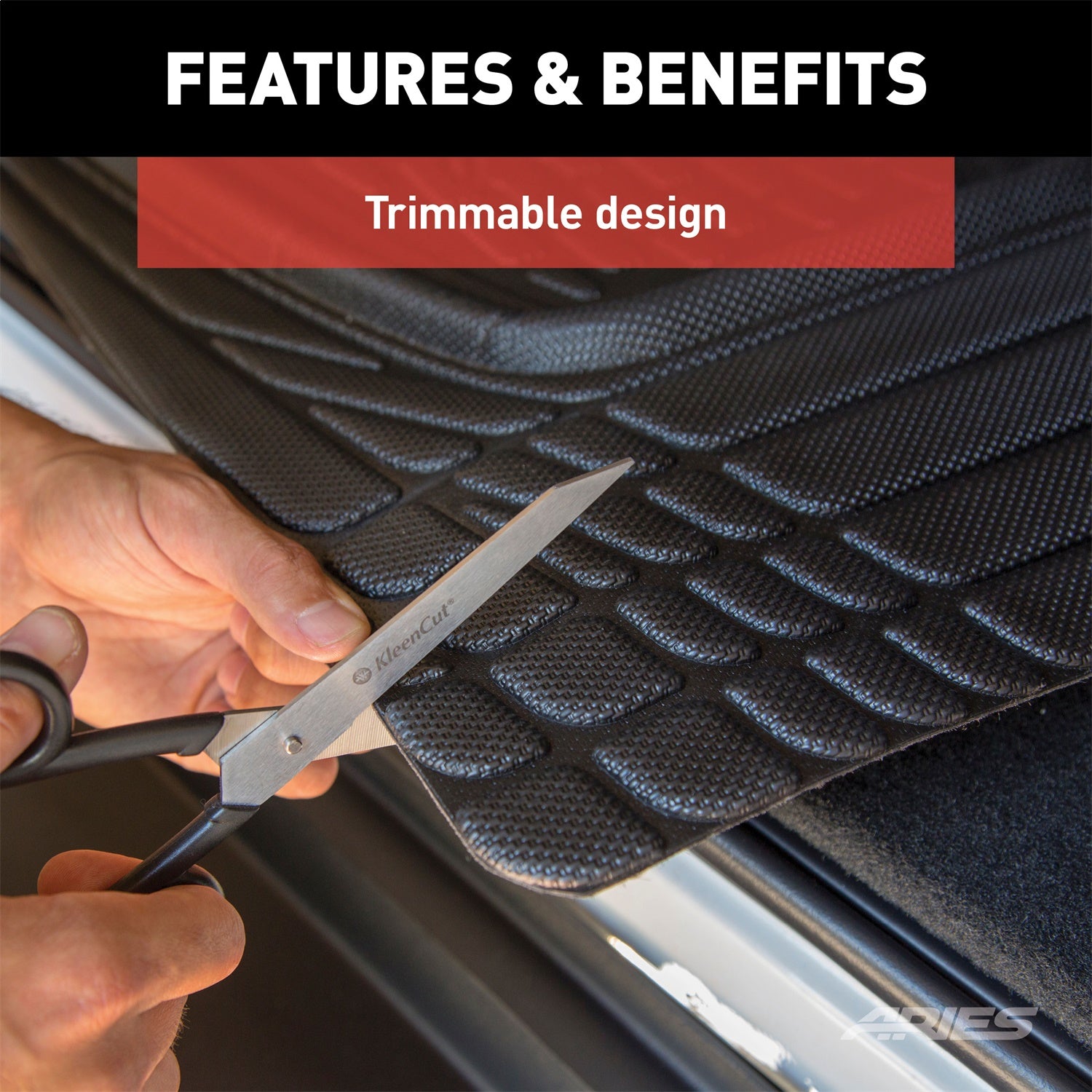 Get a stylish look and reliable interior protection with ARIES StyleGuard XD floor liners. These floor liners are not like other floor mats for trucks, Jeeps and SUVs. They are engineered with a patented anchoring system, a unique triple-layer construction and a sleek, functional finish to give you the protection you need to work hard and play even harder. One of the greatest advantages that StyleGuard XD floor liners offer over other floor liners and floor mats is their bottom layer of patented OmniGrip fibers. Unlike plastic nubs, OmniGrip uses thousands of wire-like bristles to anchor to all types of carpet and lock the floor liners into place. This makes them a safer choice every time. The second layer in the three-layer configuration is a thick pad of cross-linked polyethylene foam (XPE). XPE is sound-dampening to limit unwanted road noise. It is shock-absorbing to provide a softer step. And it is thermostatic, meaning it resists temperature transfer to keep your cab more comfortable, whether warm or cool. The top layer of StyleGuard XD floor liners is a highly durable, finely textured thermoplastic rubber. This tough yet breathable material is completely waterproof and stands up to the wear of heavy cargo. Because it is textured, it offers enhanced traction and provides a sleek, stylish appearance for the interior of your vehicle. StyleGuard XD floor liners are also equipped with integrated channels and raised edges. The channels strategically direct the flow of liquids and debris and keep them from sloshing around over rough roads and bumpy trails. The raised edges help contain snow, mud, dirt, sand and more. This StyleGuard XD cargo floor liner has a universal design to fit a wide variety of truck, Jeep and SUV applications. It has a trimmable design and can easily be cut with a scissors to fit most trunks or cargo spaces. These floor liners are also constructed from lightweight materials for easy removal.