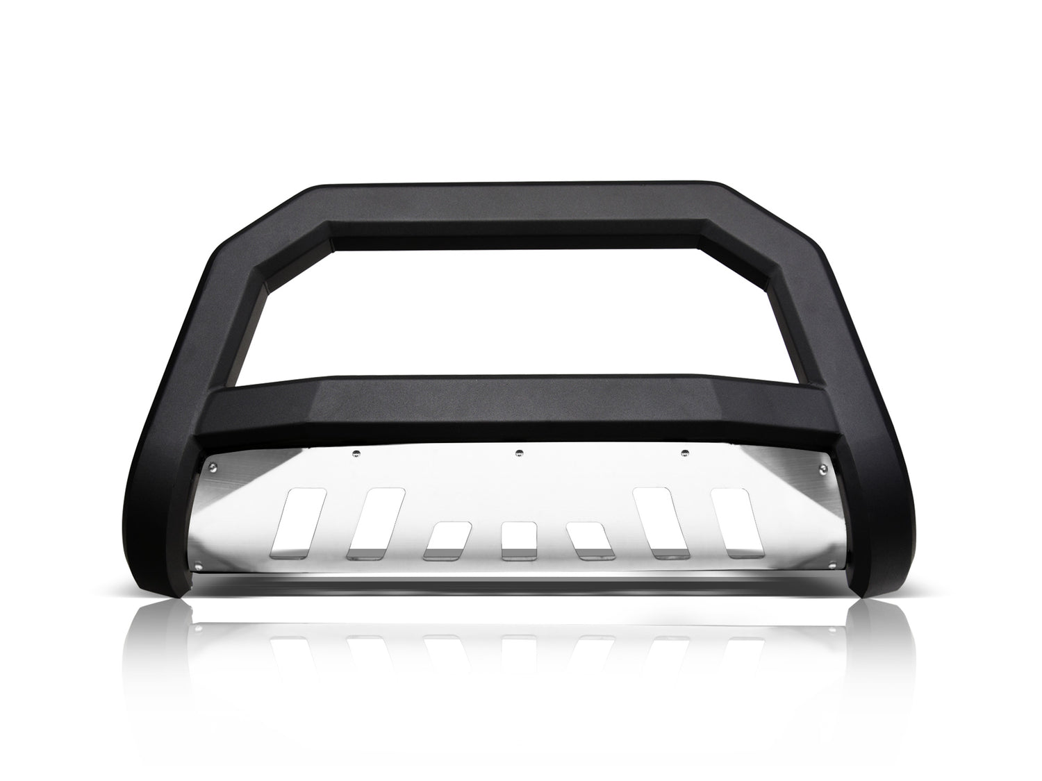 Armordillo AR Series Bull Bar, If you're looking to protect the front end of your rig against the elements and impact of minor collisions without sacrificing the look of your new stylish front grille, the AR series bull bar with its aggressive angular design is just the thing you need. Unlike regular tubular bull bars, Armordillo AR series bull bars will not hide your front grille or a large portion of your front bumper, while keeping the front-end protection at a high level. Plus, the mesh styled skid plate doesn't restrict airflow to the radiator and engine preventing its overheating. Arm your off-road beast with Armordillo, an industry-leading manufacturer of top-of-the-line truck accessories and parts. Years of ingenious engineering and passion for the world's toughest trucks has been poured out into providing hardcore off-road products designed to turn your beefy companion into the embodiment of sleekness, edginess, and aggression. Armordillo offers bull bars, step bars, fender flares, truck bed rails, trailer hitches and some of its unique products. Pre-Runner bumper guards, AR drop steps, lockers, and bull bars. You can count on Armordillo to bring you impeccably strong and durable parts combining brutal appeal with high-end elegance. The brand's bull bars, grilles, fender flares and side step bars are a sure way to instantly give your off-road warrior a more sharp, mean look along with unmatched comfort and protection against the rage of the trails. So, if you are looking to improve your vehicle's stance and fortify its defenses to own the dust with confidence, Armordillo is the answer to all your needs.