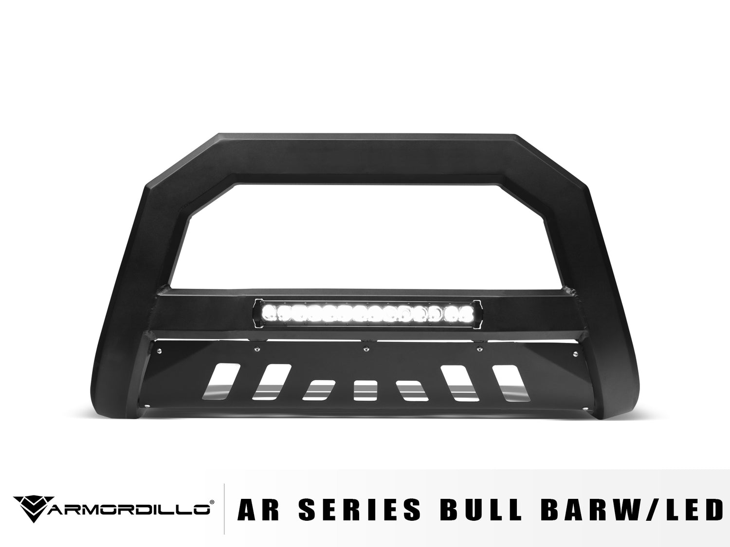 Armordillo AR Series Bull Bar, If you're looking to protect the front end of your rig against the elements and impact of minor collisions without sacrificing the look of your new stylish front grille, the AR series bull bar with its aggressive angular design is just the thing you need. Unlike regular tubular bull bars, Armordillo AR series bull bars will not hide your front grille or a large portion of your front bumper, while keeping the front-end protection at a high level. Plus, the mesh styled skid plate doesn't restrict airflow to the radiator and engine preventing its overheating. Arm your off-road beast with Armordillo, an industry-leading manufacturer of top-of-the-line truck accessories and parts. Years of ingenious engineering and passion for the world's toughest trucks has been poured out into providing hardcore off-road products designed to turn your beefy companion into the embodiment of sleekness, edginess, and aggression. Armordillo offers bull bars, step bars, fender flares, truck bed rails, trailer hitches and some of its unique products. Pre-Runner bumper guards, AR drop steps, lockers, and bull bars. You can count on Armordillo to bring you impeccably strong and durable parts combining brutal appeal with high-end elegance. The brand's bull bars, grilles, fender flares and side step bars are a sure way to instantly give your off-road warrior a more sharp, mean look along with unmatched comfort and protection against the rage of the trails. So, if you are looking to improve your vehicle's stance and fortify its defenses to own the dust with confidence, Armordillo is the answer to all your needs.