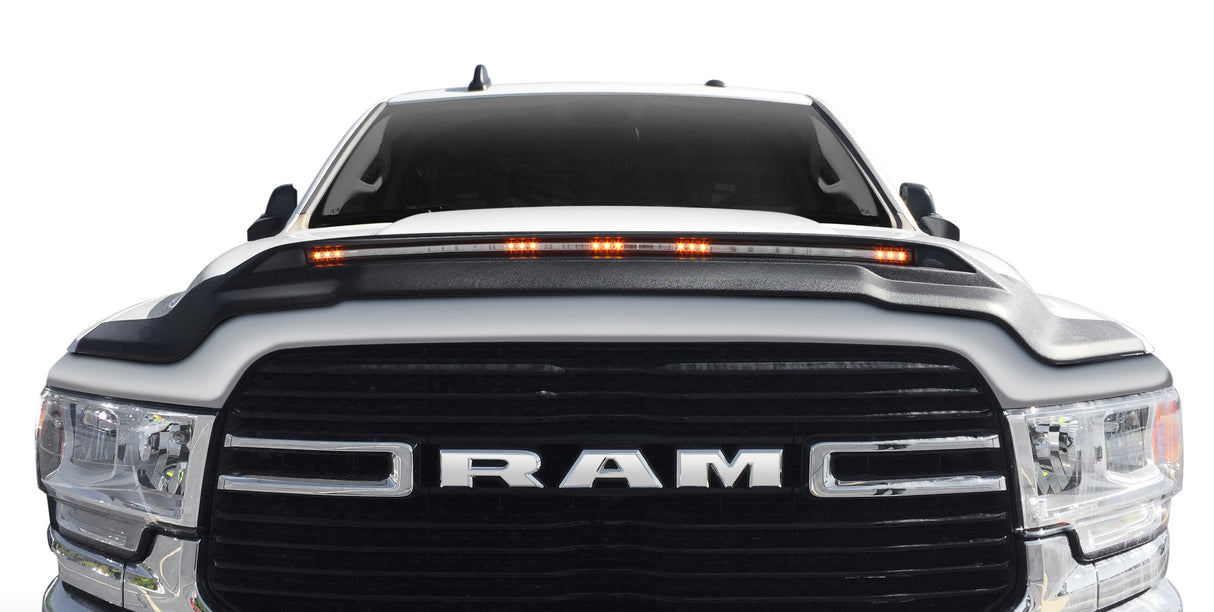 It's the strongest defense a hood can mount, with a bold new look that's built to last. The Aeroskin (R) LightShield (TM) Hood Protector features ultra-rugged, Dura-Flex (R) 2000 TPO construction that de?ects bugs, rocks, and debris. Its five amber LED running lights are surrounded by a textured matte black finish. Installs in minutes with included 3M automotive adhesive and seamlessly integrates with your existing parking lights. Carwash safe. Warrantied against warping, cracking or factory defects for life. Proudly made in the USA with global materials.
