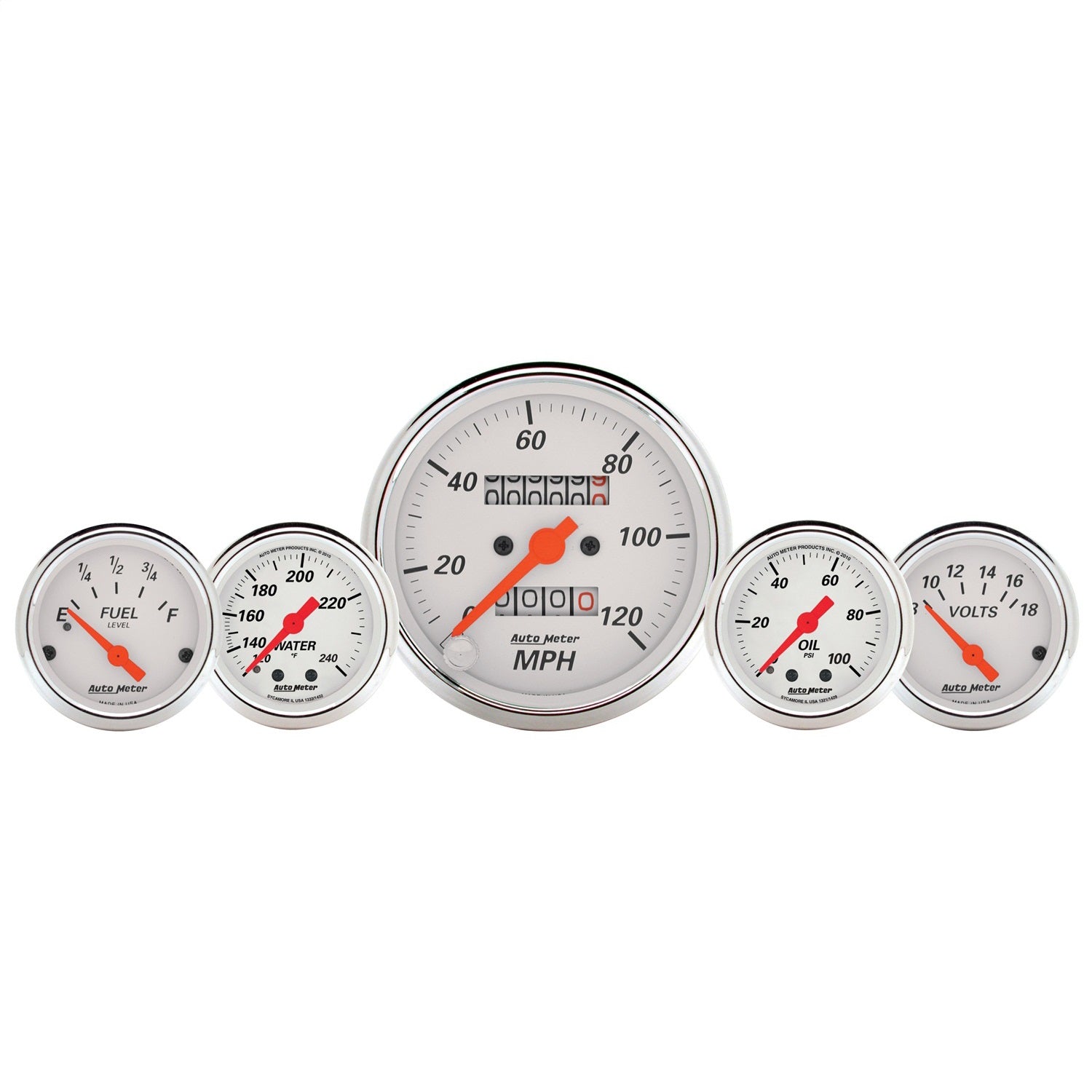 AutoMeter 1311 - Gauge Kit 5 Pc. 3-1/8in. & 2-1/16in. Mech. Speedo. Wtmp & Oilp Arctic Wht