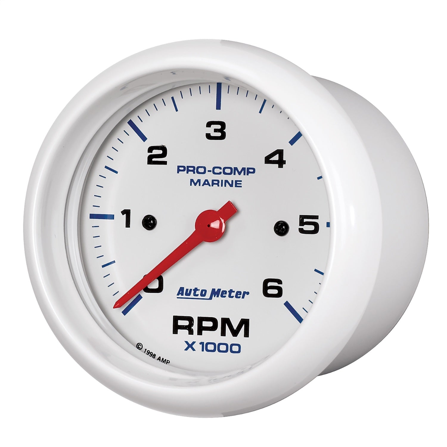 Tachometer - Pro-Comp Marine - 6000 RPM - Electric - Analog - 3-3/8 in Diameter - Dash Mount - White Face - Each