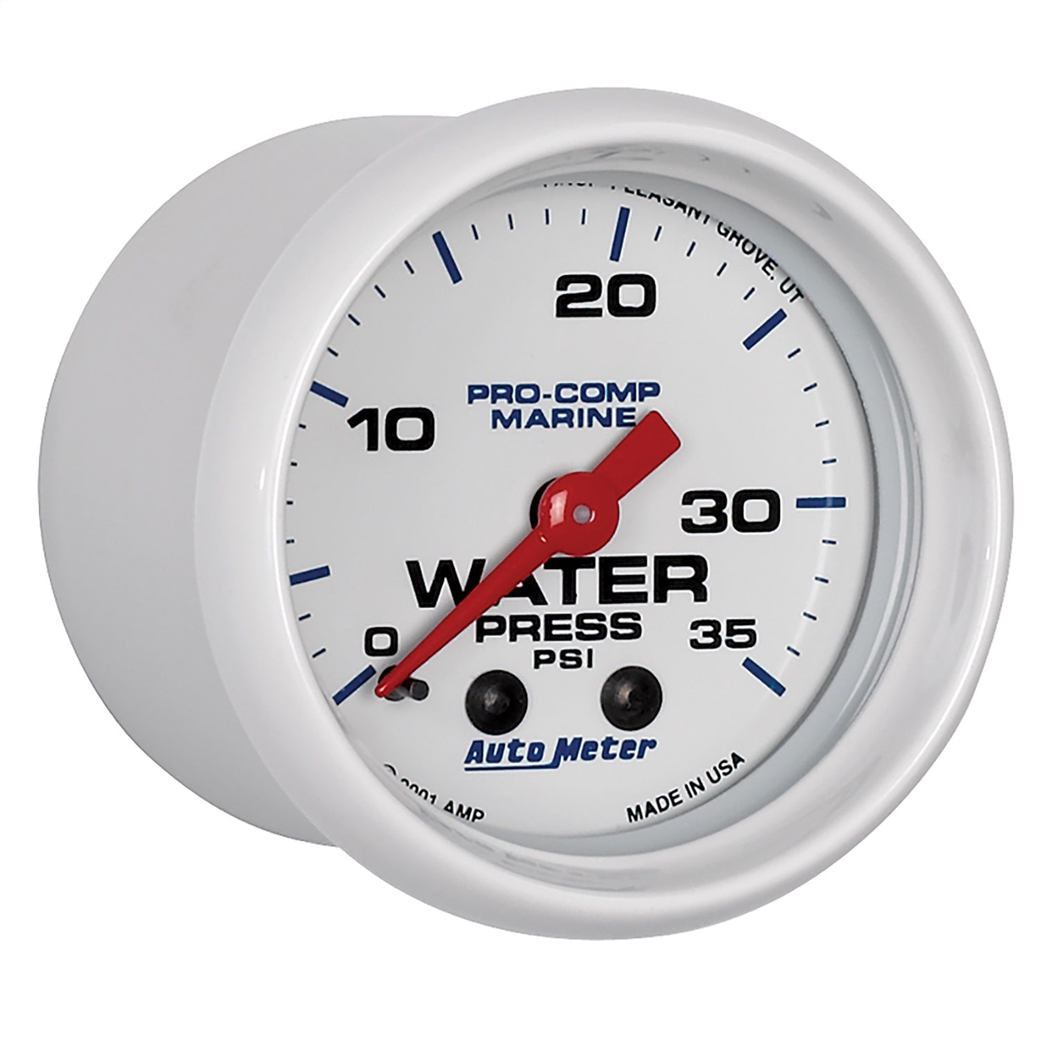 AutoMeter 200772 - Marine White 2-1/16in 35 PSI Mechanical Water Pressure Gauge
