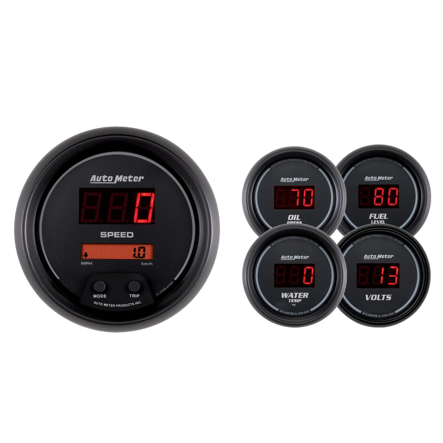 AutoMeter 6300 - Gauge Kit 5 Pc. 3-3/8in. & 2-1/16in. Elec Speedo Digital Black Dial W/ Red Led