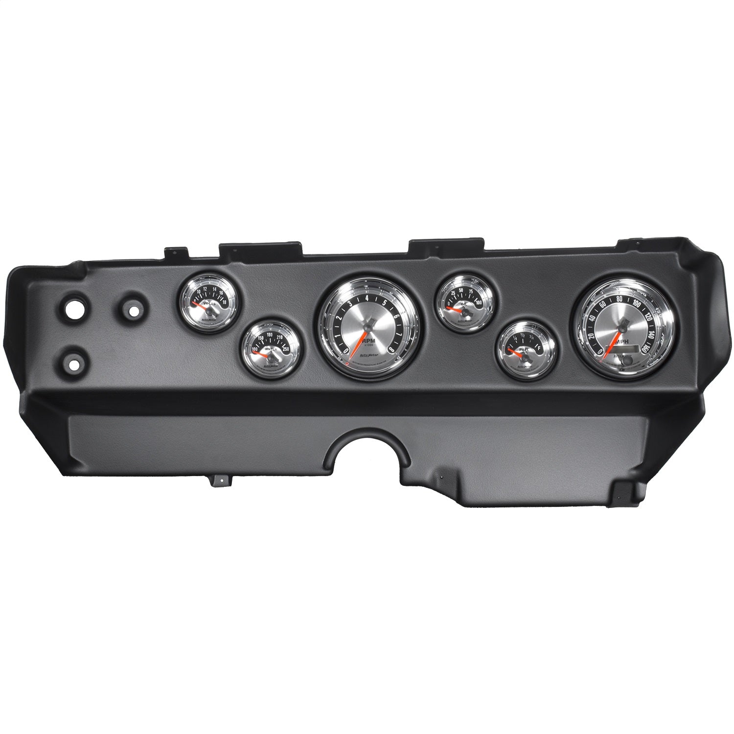 Includes 3-3/8" American Muscle electric speedometer & tachometer and 2-1/16" electric fuel level (73/10 ohm, non-linear), water temperature, oil pressure, and voltmeter